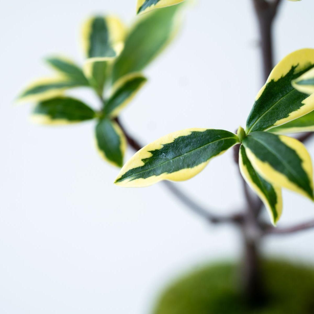 「前島」は、斑入りの沈丁花です。普通の沈丁花にはない白い模様が入ることで、目に華やかな印象があります。この品種ならでは魅力です。花はピンク色。花言葉は「青春の喜び、永遠、不滅、不死」などがあります。