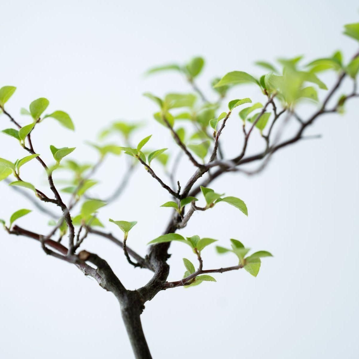 枝先の小さい葉、自然な曲線を描く細い幹には可憐な趣があります。迫力や力強さとはまた違ったエゴノキならではの繊細で野趣のある美しさが魅力です。