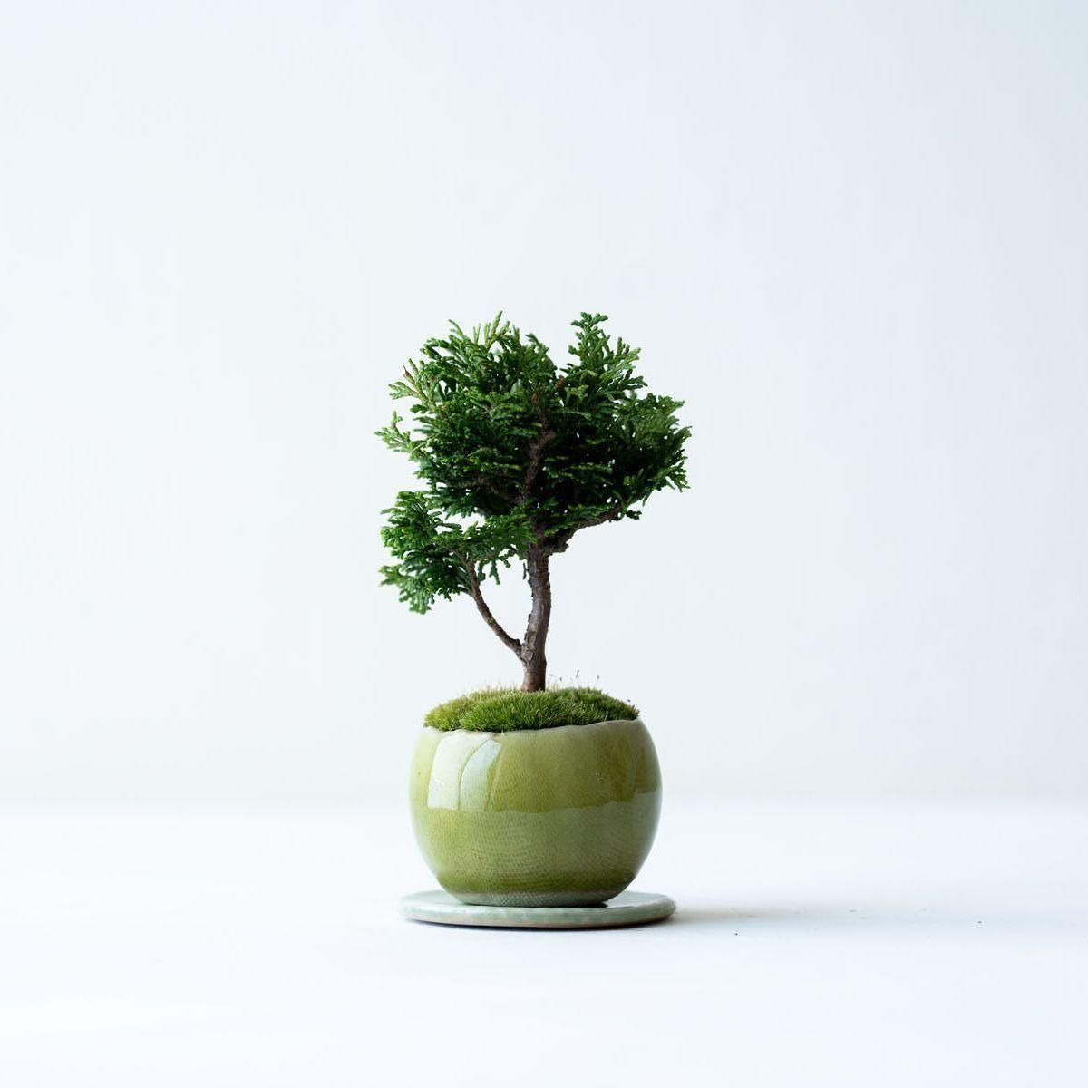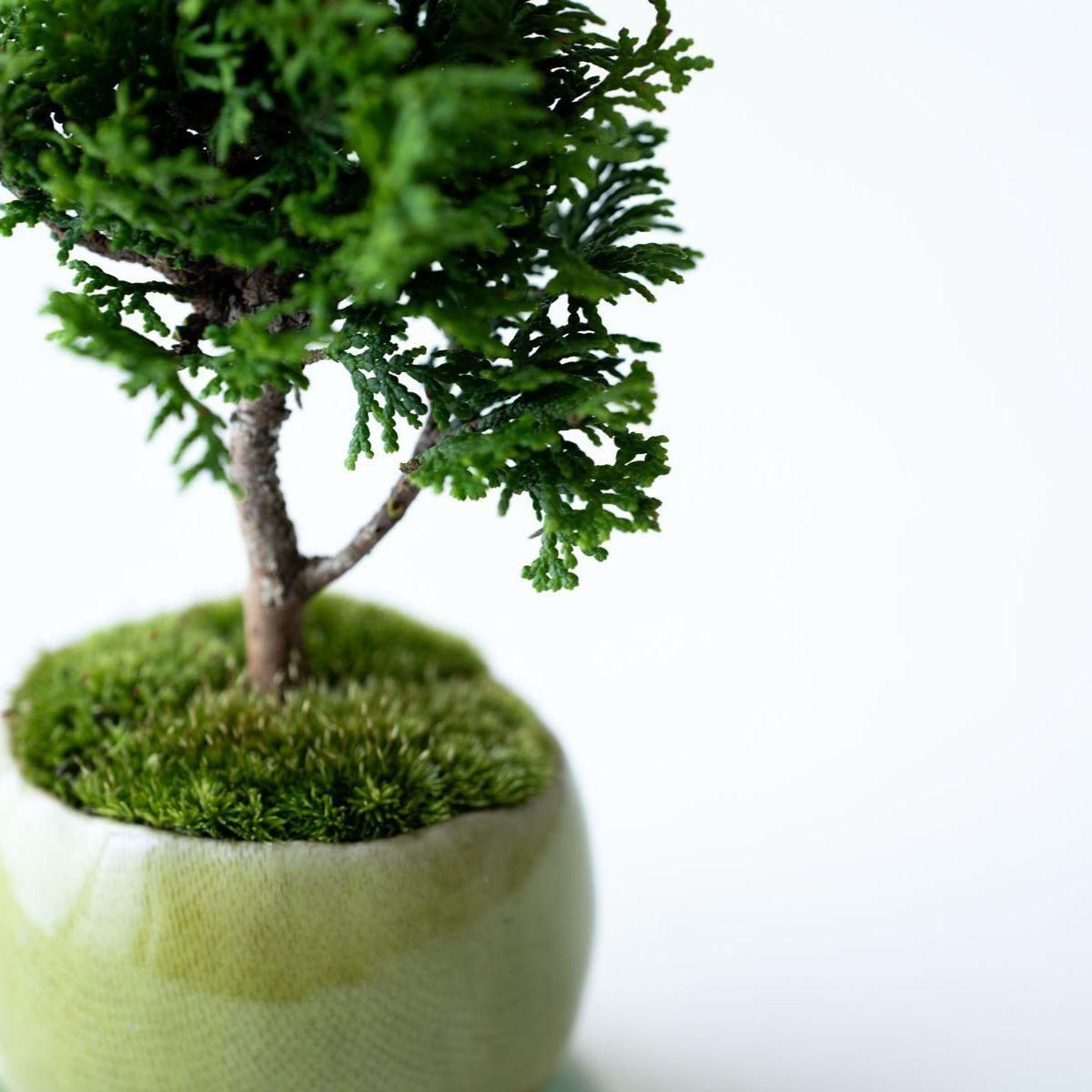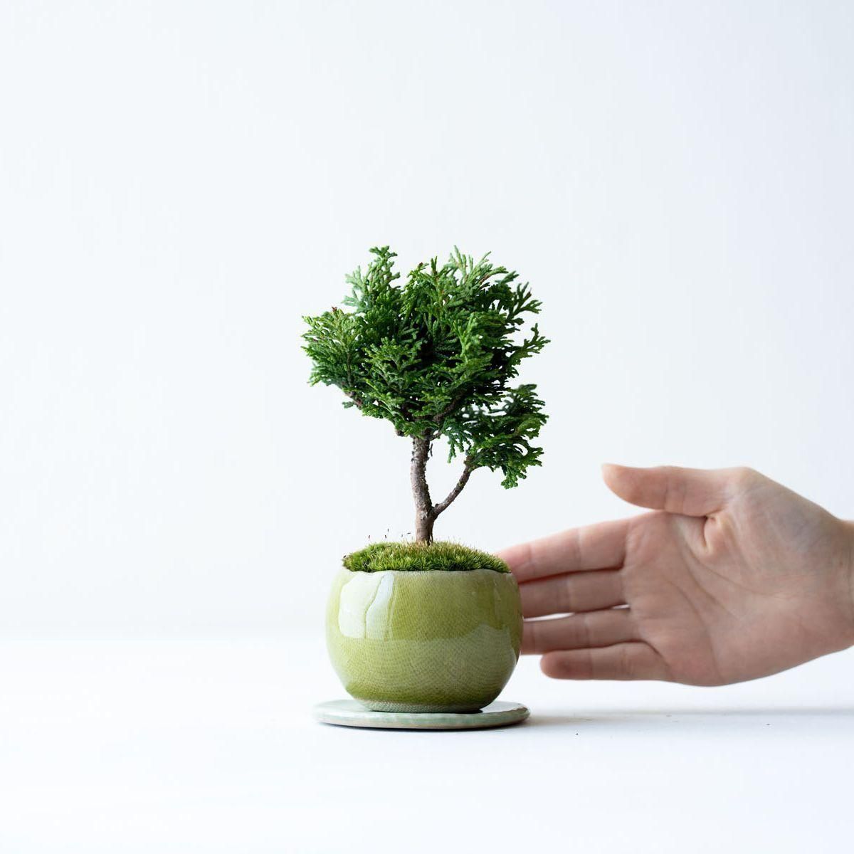 こんもりと密に茂った葉が可愛らしい津山ヒノキ。細かく茂った柔らかな葉は落葉せず、通年緑を楽しめます。比較的丈夫で育てやすいので初心者の方にもおススメ。