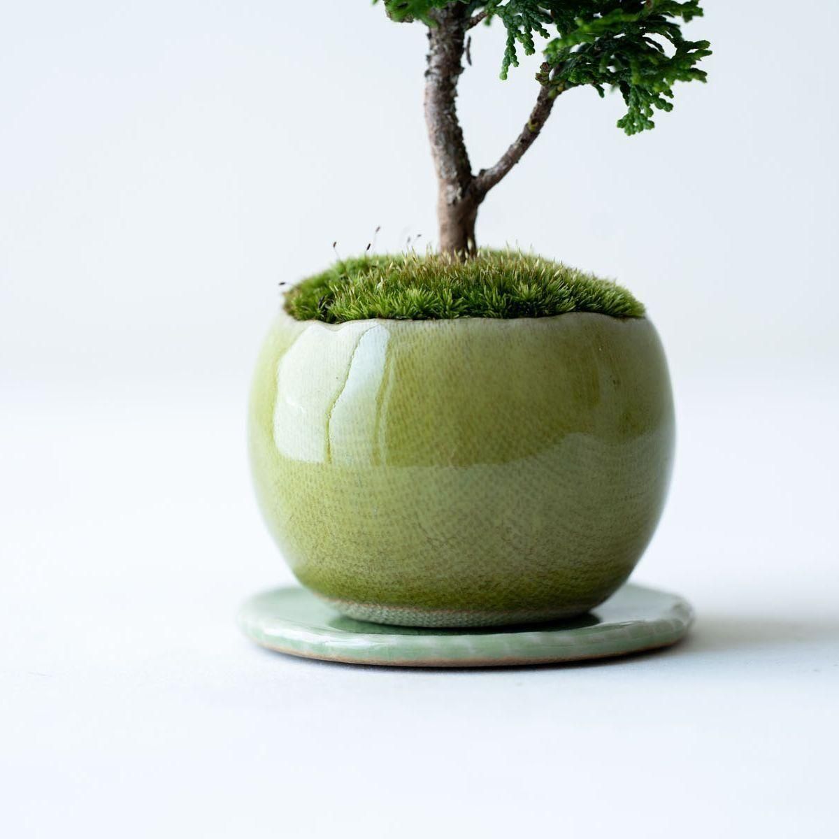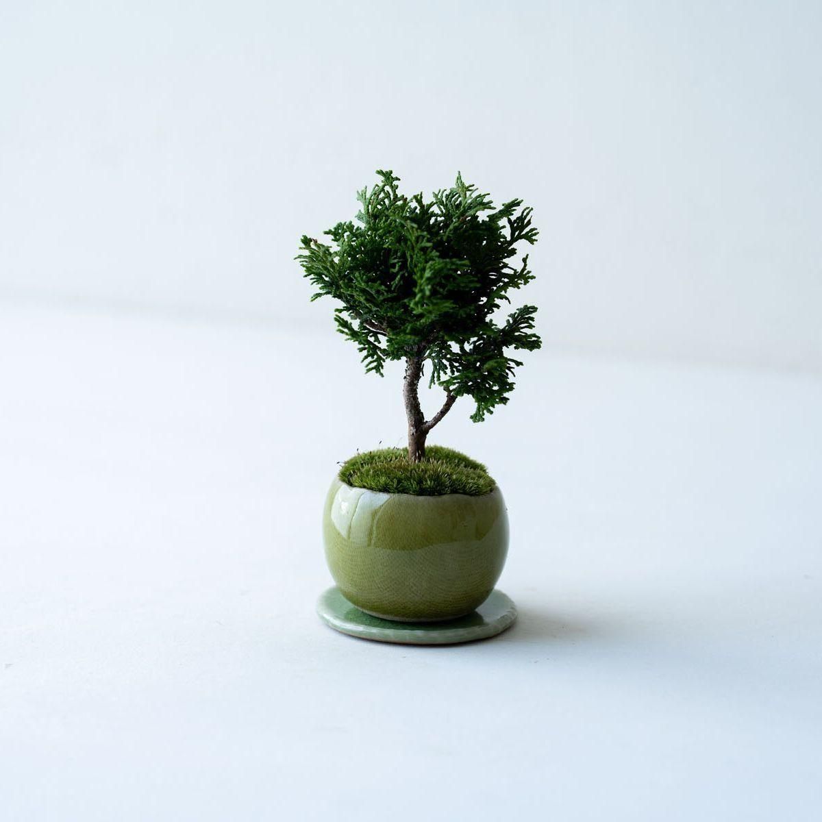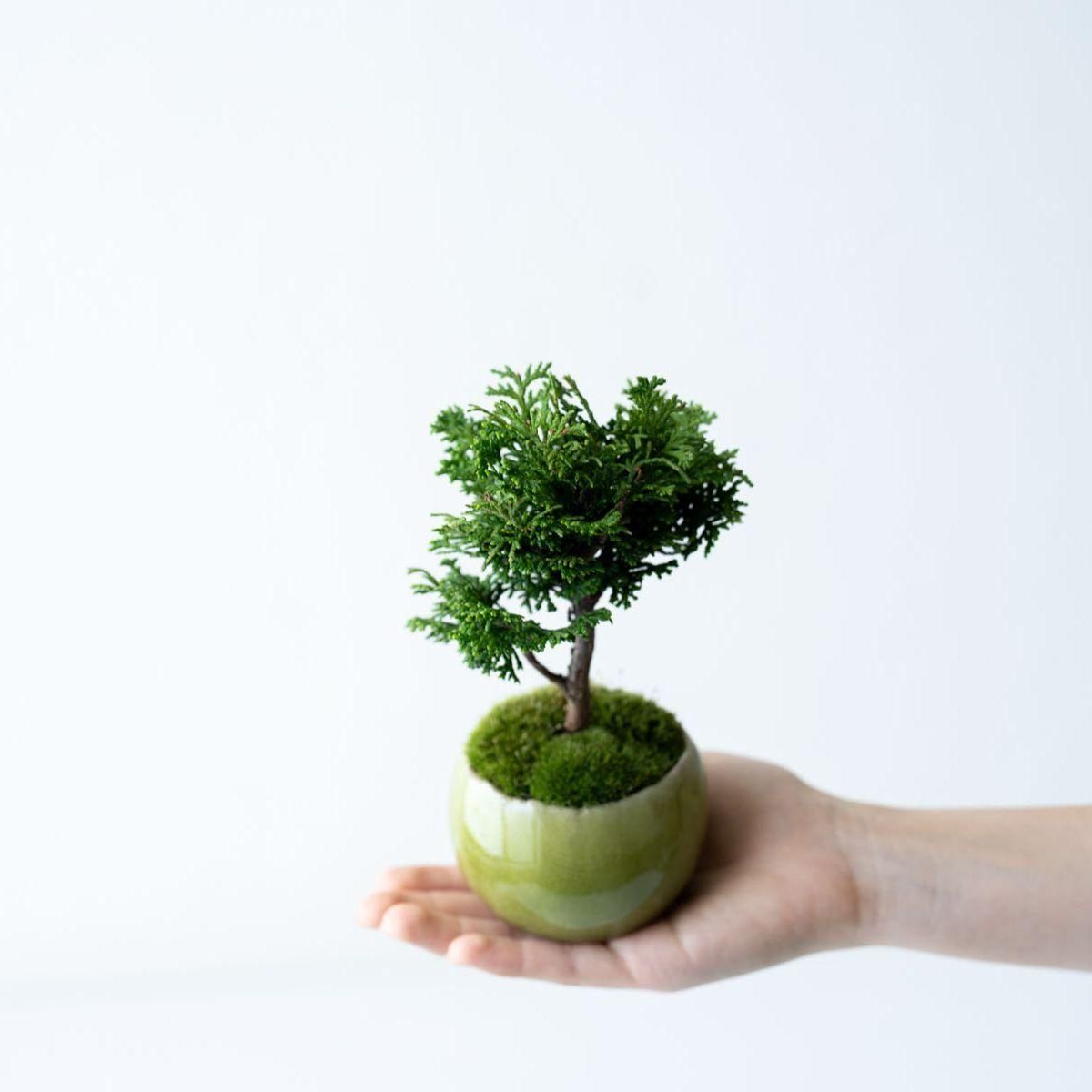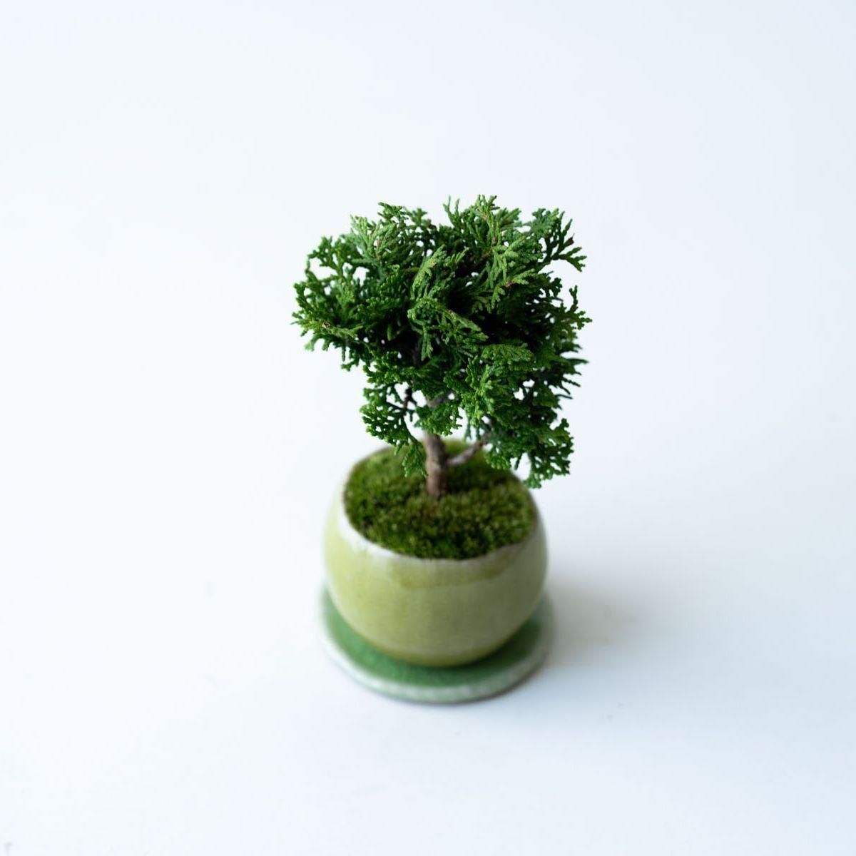 こんもりと密に茂った葉が可愛らしい津山ヒノキ。細かく茂った柔らかな葉は落葉せず、通年緑を楽しめます。比較的丈夫で育てやすいので初心者の方にもおススメ。
