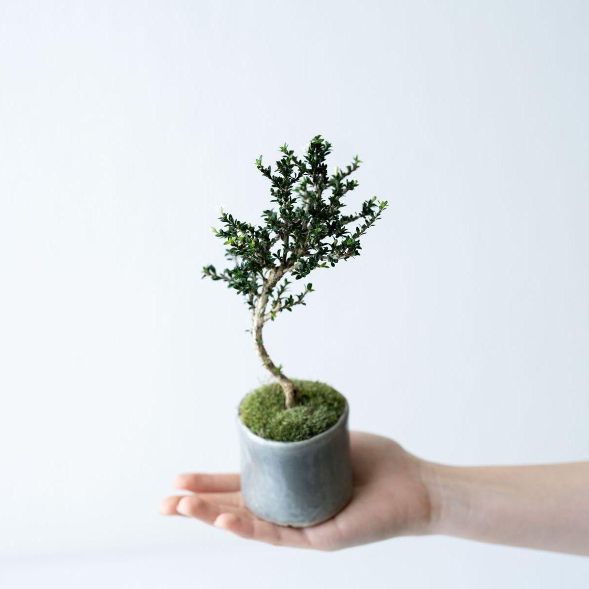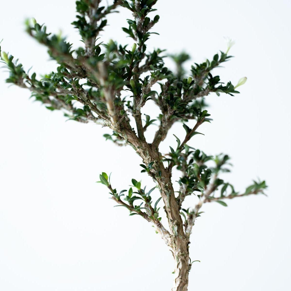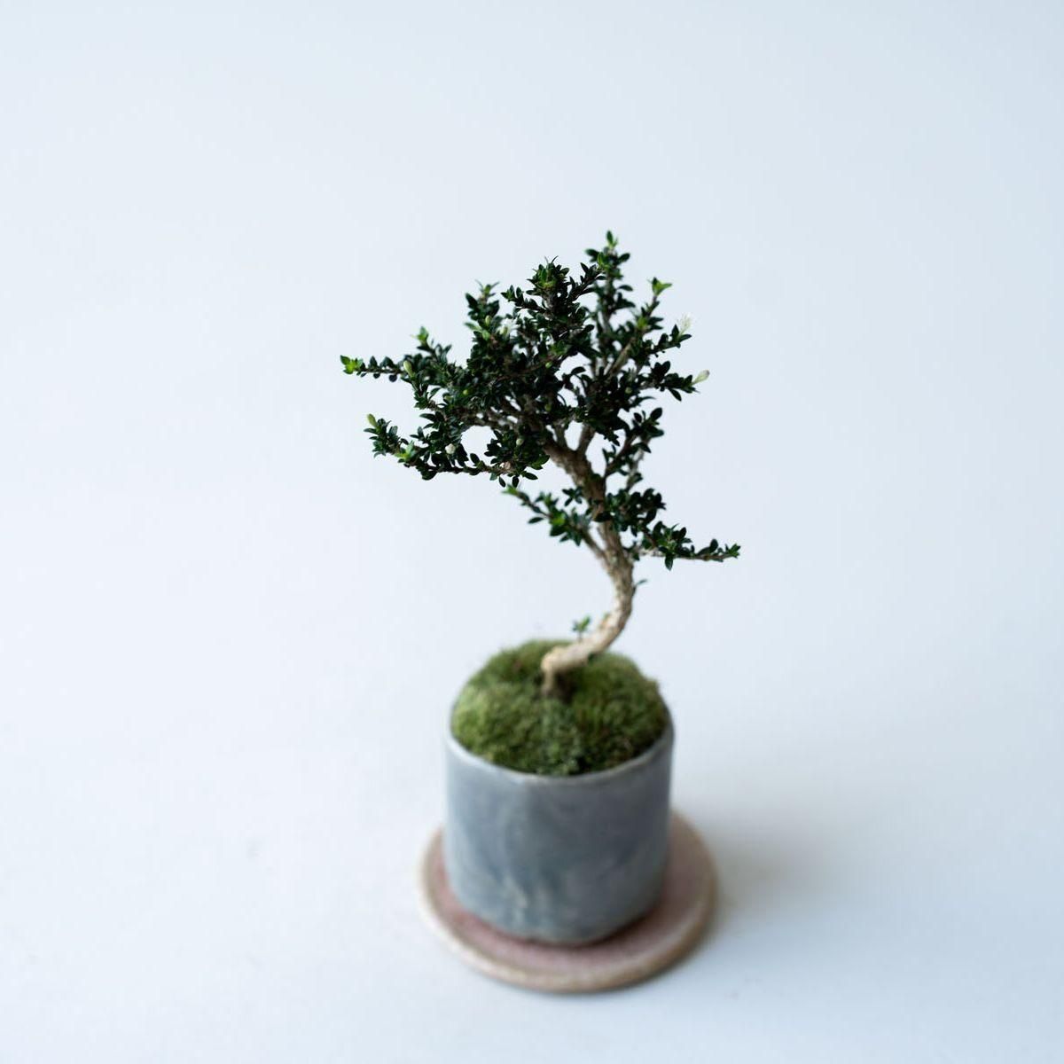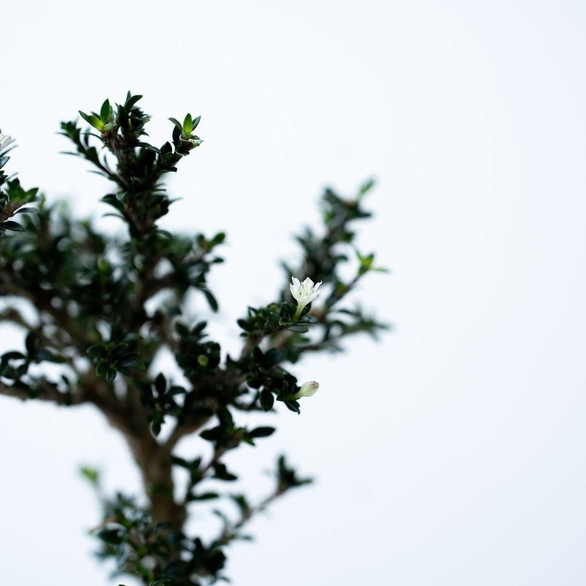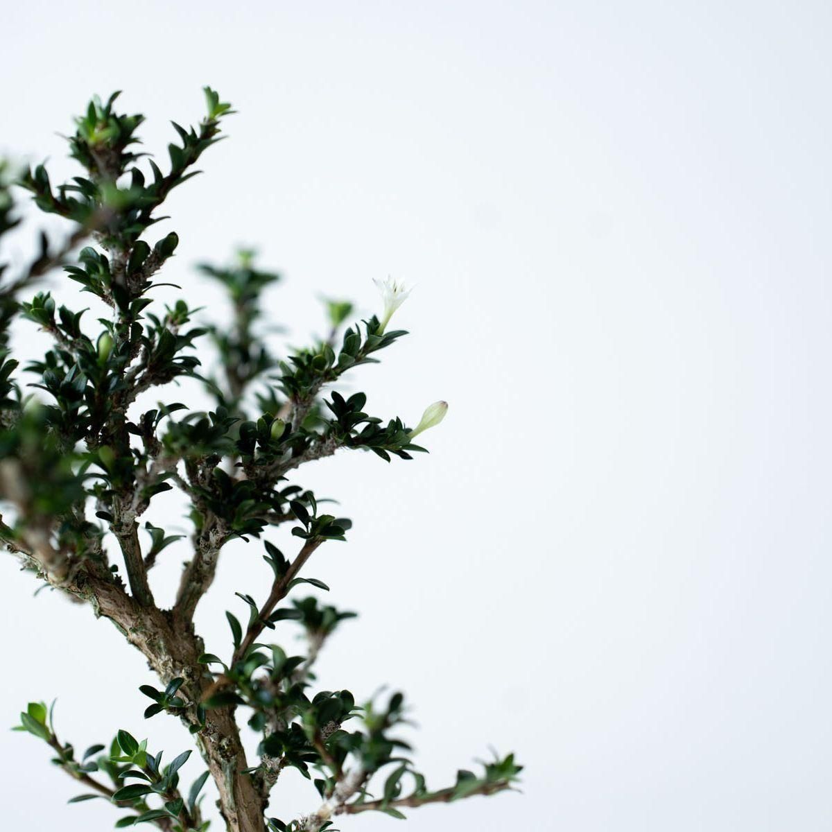 通常の香丁木と比べて葉も花も小さな八房香丁木。花は四季咲で、年に2度、薄紫色の可憐な花を咲かせます。非常に細やかに枝分かれするので、大きさ以上の迫力ある樹形に育ちます。強健な性質で、ビギナーの方でも育成しやすい点もこの木の魅力。