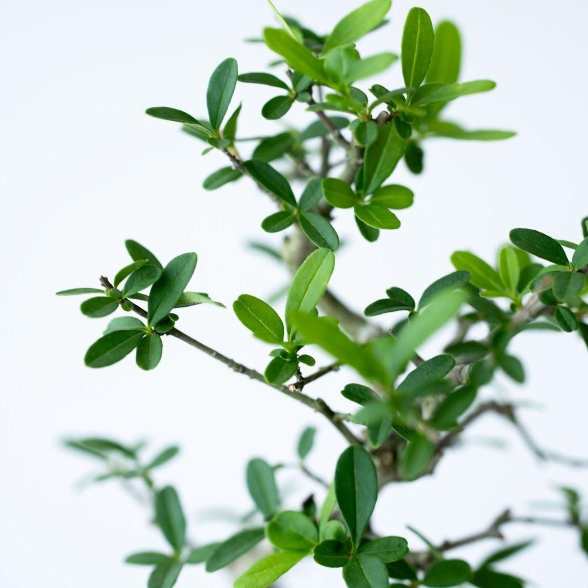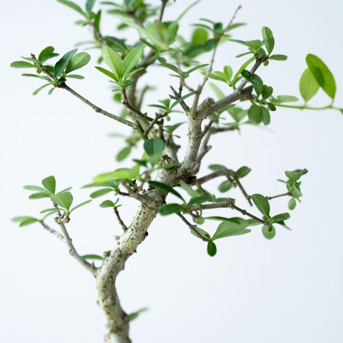 イボタは日本に自生する植物で、美しい白銀の幹肌が特徴的。枝先には楕円形の葉を付けます。5月頃には白い花を咲かせ、結実した実は秋に濃紫に染まります。とても丈夫で育てやすく、病害虫に強い性質をもっていますので植物ビギナーの方にもオススメです。