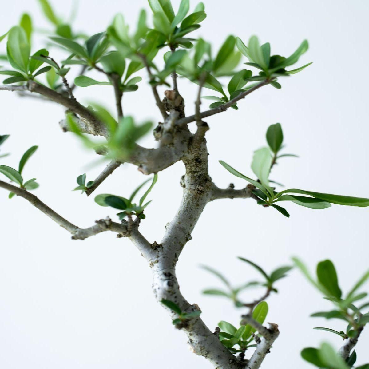 イボタは日本に自生する植物で、美しい白銀の幹肌が特徴的。枝先には楕円形の葉を付けます。5月頃には白い花を咲かせ、結実した実は秋に濃紫に染まります。とても丈夫で育てやすく、病害虫に強い性質をもっていますので植物ビギナーの方にもオススメです。