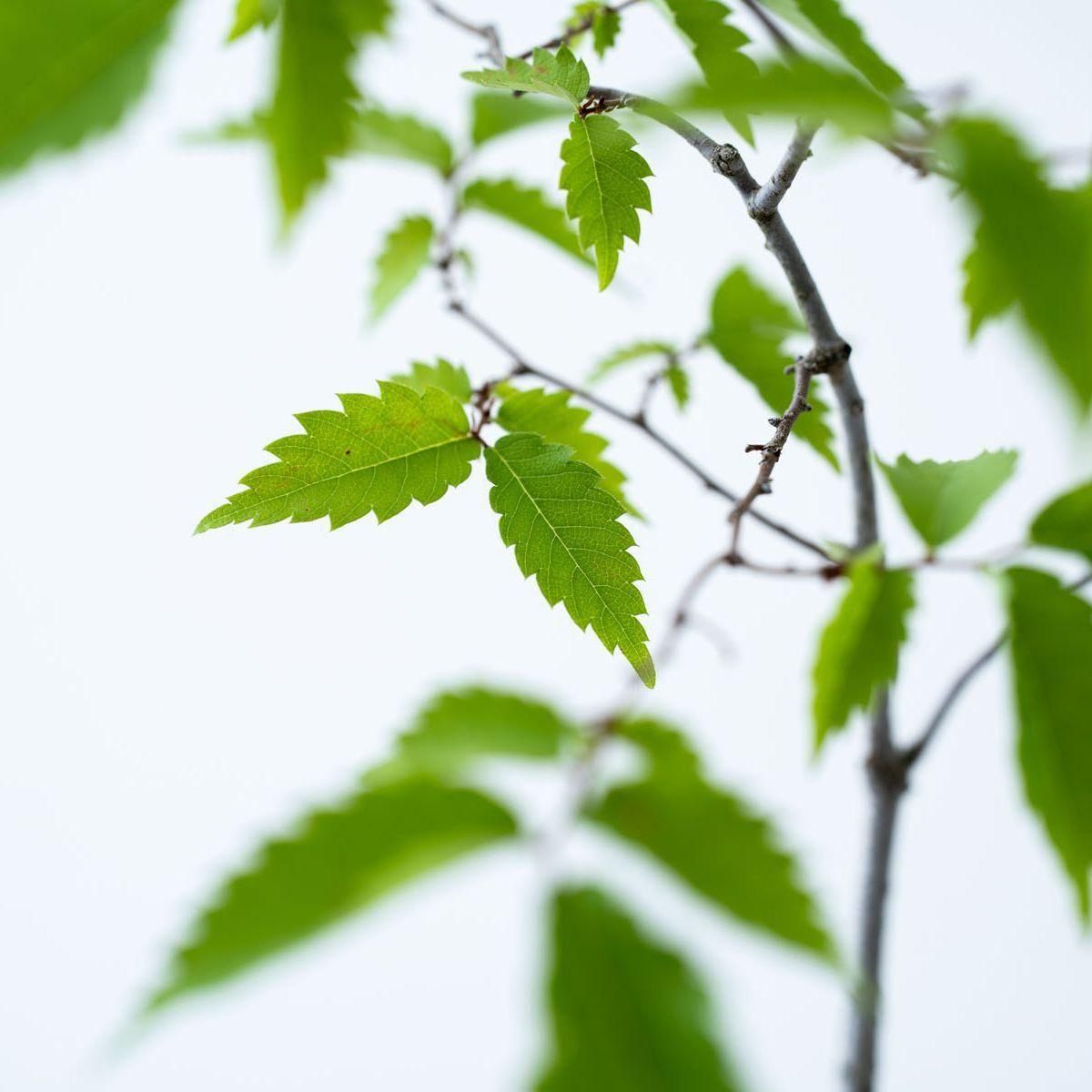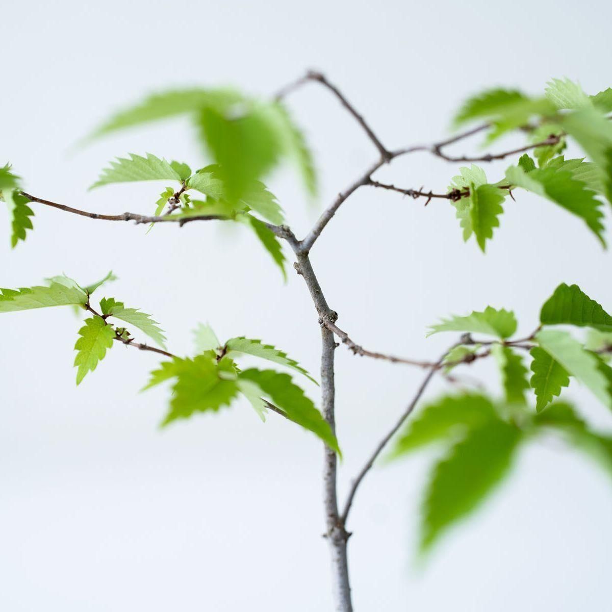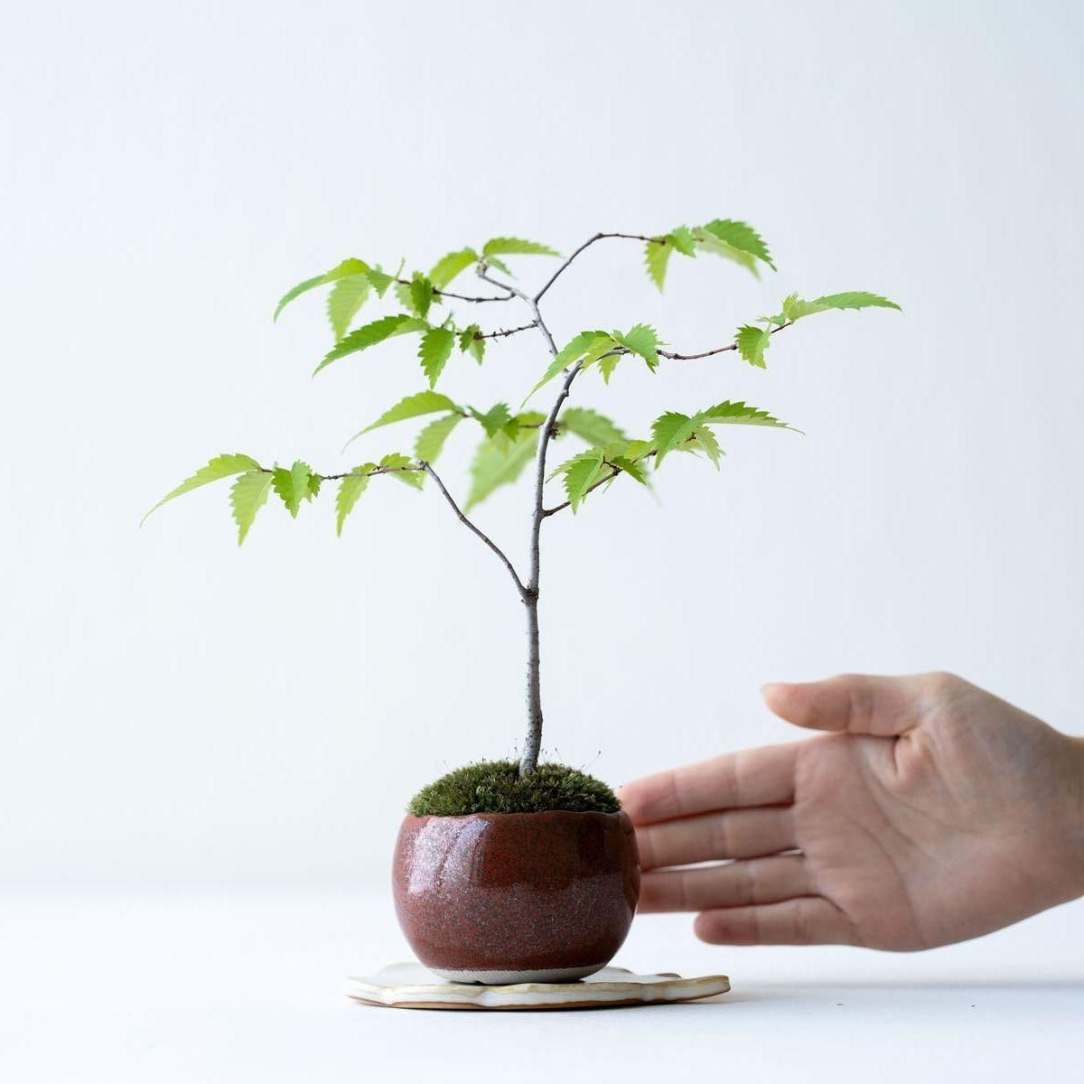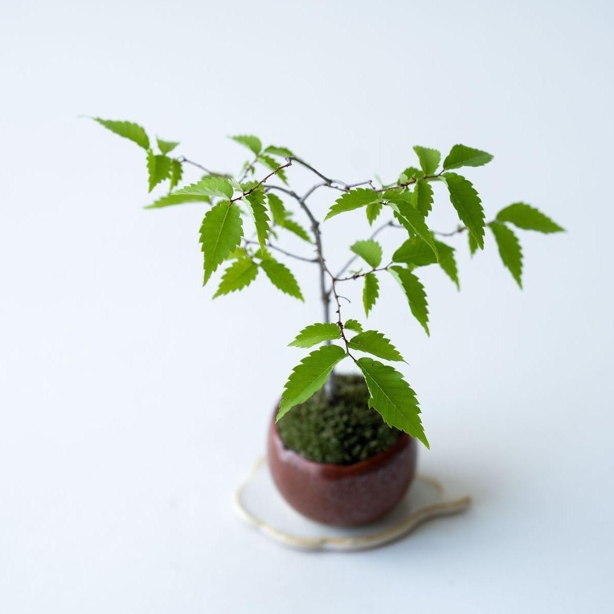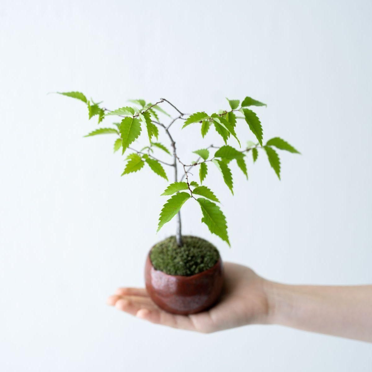 ケヤキは素直な樹形、そして繊細な枝先が特徴で大木感を演出しやすく、盆栽としては初心者〜玄人まで幅広く愛される樹木。成長期のお世話も分かり易く、芽摘みや芽かき、伸びた枝を鋏で切り戻すなどの作業で年々格好良さが増し、長く育てるほど古木感が出てくるのを楽しめます。また、春の芽出し、夏の葉姿、秋の紅葉、冬の寒樹など、四季折々の変化が鮮やかな樹木で、四季を身近に感じさせてくれるでしょう。