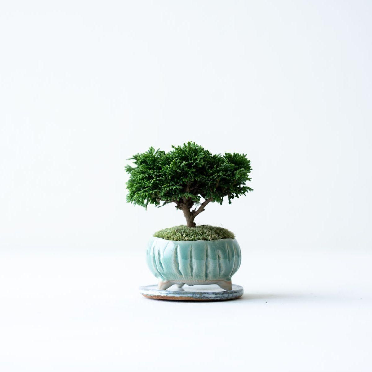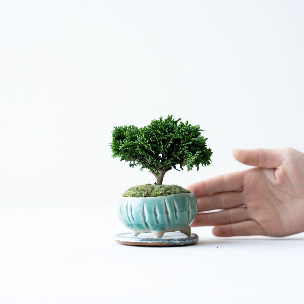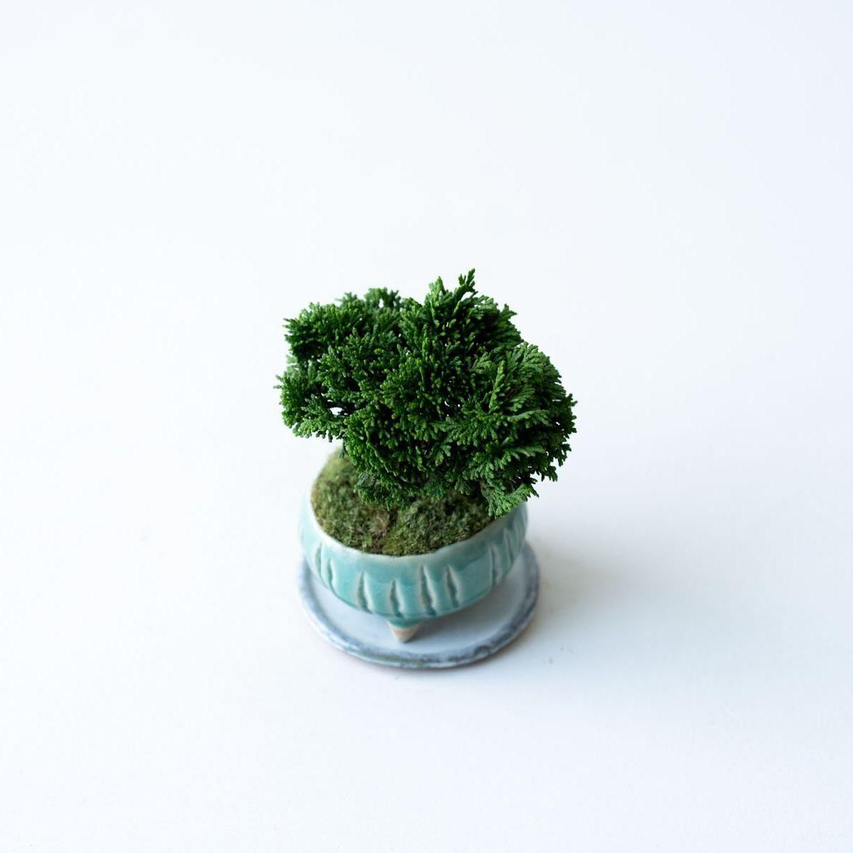 古木の様な、趣ある佇まいの連山ヒノキ。豊かに茂る精緻な葉、細やかな枝、そして力強く地に根差した幹は時間の流れを雄弁に語ります。連山ヒノキは通常のヒノキや他の植物と比べて枝葉の生長が非常に遅いという特性があります。これは、一年でわずかに葉が伸びる程度なので自然と樹形が整いやすいという美点でもあります。変化は多くありませんが、長く付き合う中で穏やかに成長し、徐々に立派になる過程を愛でるのというのも趣深い楽しみがあります。そして何より、こんもりとした姿は愛嬌たっぷり。