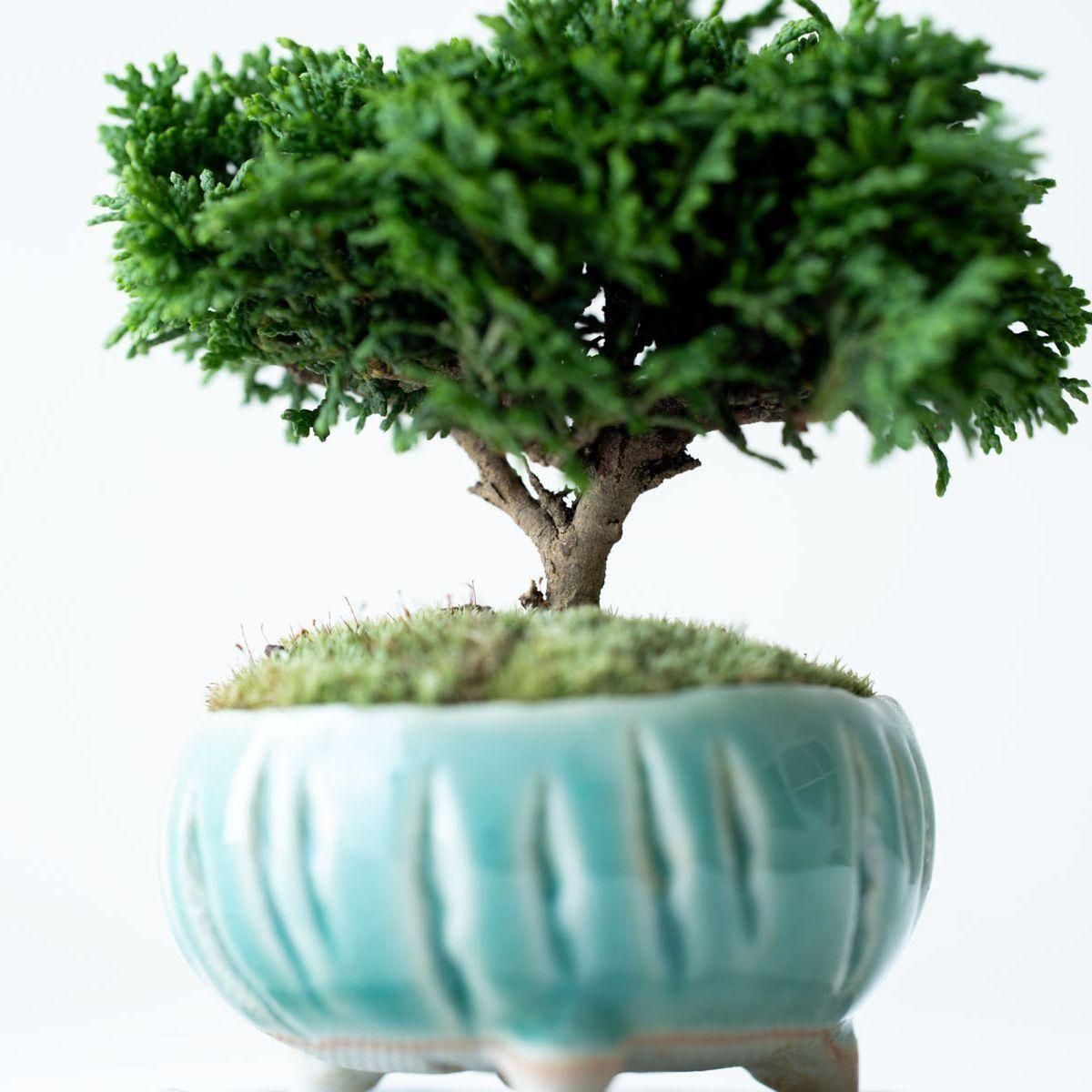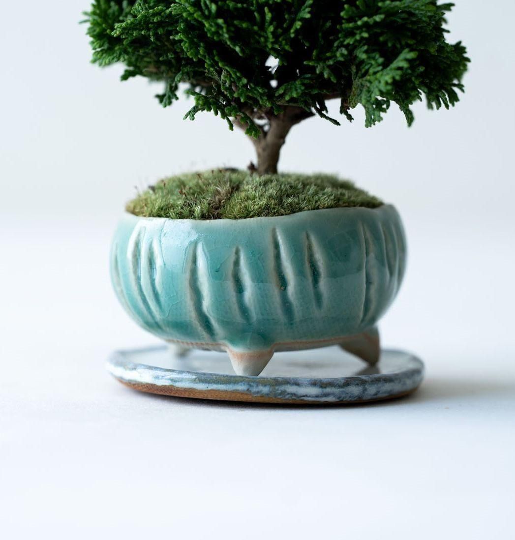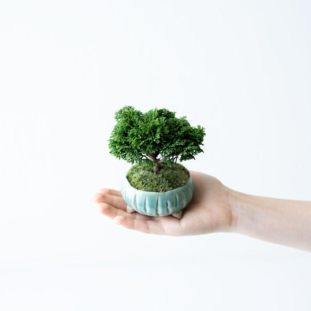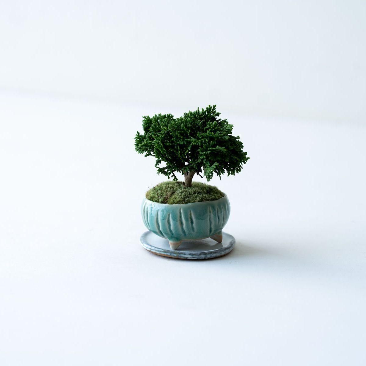 古木の様な、趣ある佇まいの連山ヒノキ。豊かに茂る精緻な葉、細やかな枝、そして力強く地に根差した幹は時間の流れを雄弁に語ります。連山ヒノキは通常のヒノキや他の植物と比べて枝葉の生長が非常に遅いという特性があります。これは、一年でわずかに葉が伸びる程度なので自然と樹形が整いやすいという美点でもあります。変化は多くありませんが、長く付き合う中で穏やかに成長し、徐々に立派になる過程を愛でるのというのも趣深い楽しみがあります。そして何より、こんもりとした姿は愛嬌たっぷり。