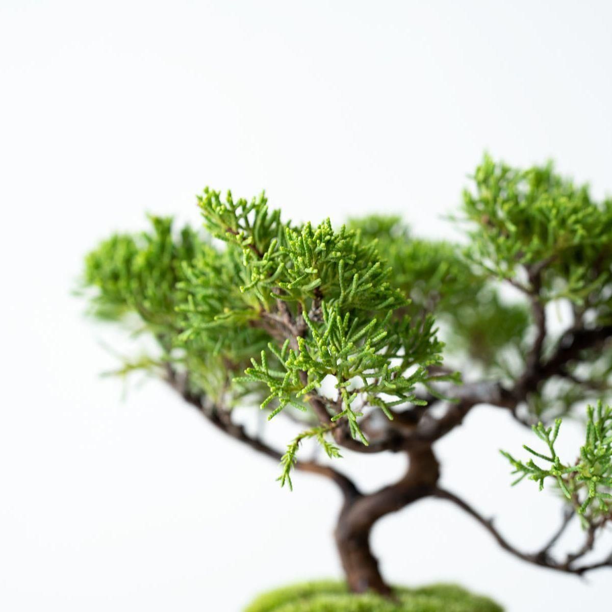 盆栽の世界で絶対的な人気を誇る真柏(しんぱく)。深い緑が美しい葉姿、育てるほどに力強さや古さを増す幹肌、そして強健な性質でとても育てやすいことから初心者から玄人まで幅広く親しまれています。また、真柏の葉には深い森林を連想させる香り成分が含まれており、その香りの良さからアロマオイルにも使用されています。お手入れの度に深呼吸したくなる香りが楽しめるのも、真柏の隠れた魅力かもしれません。