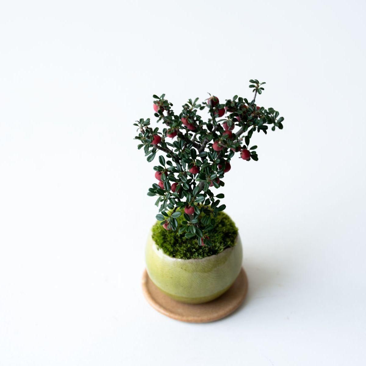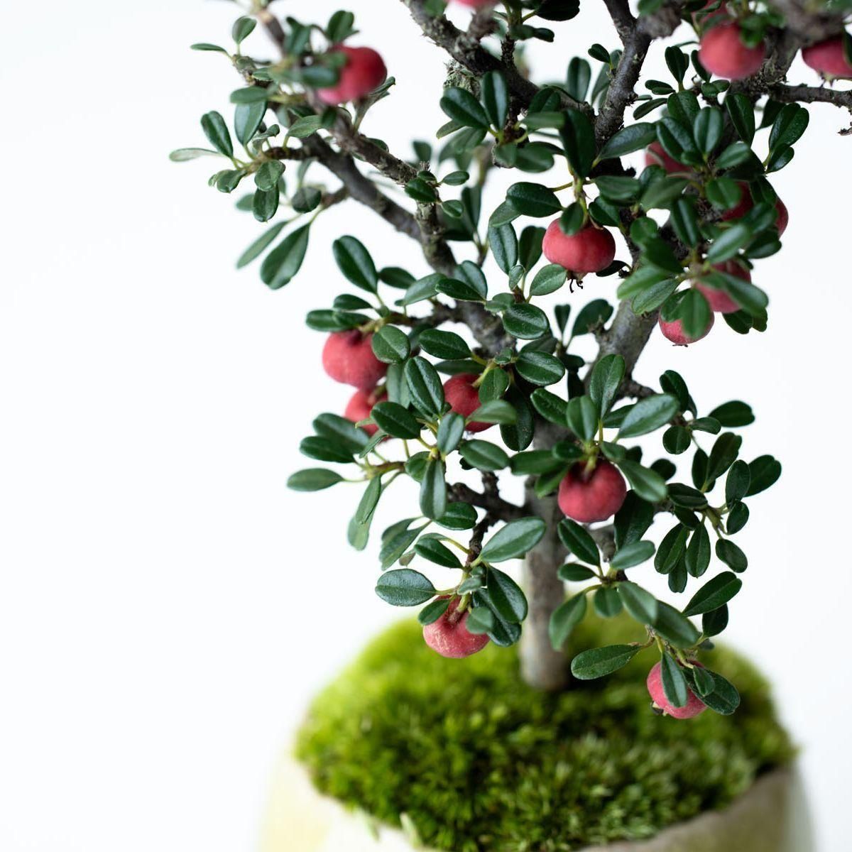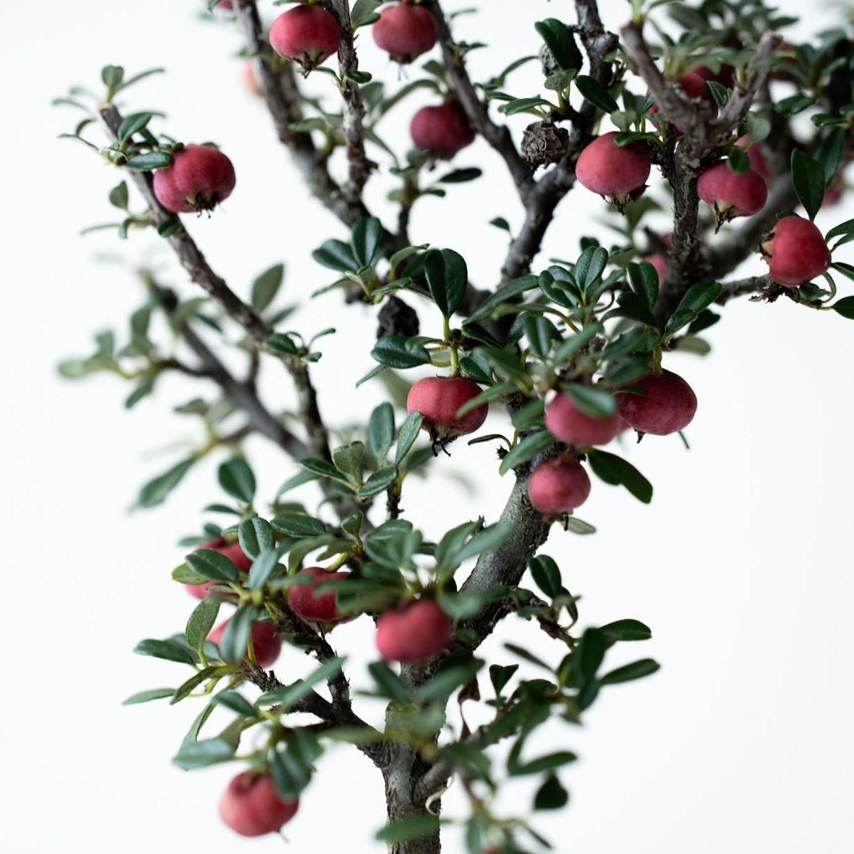 光沢のある小さな葉が可愛らしいシロシタン。春に純白の可憐な花を咲かせ、その後小さな実を付けます。はじめは小さめですが徐々に膨らみ、赤く色付き、秋ごろにはリンゴのように真っ赤な実が楽しめます。