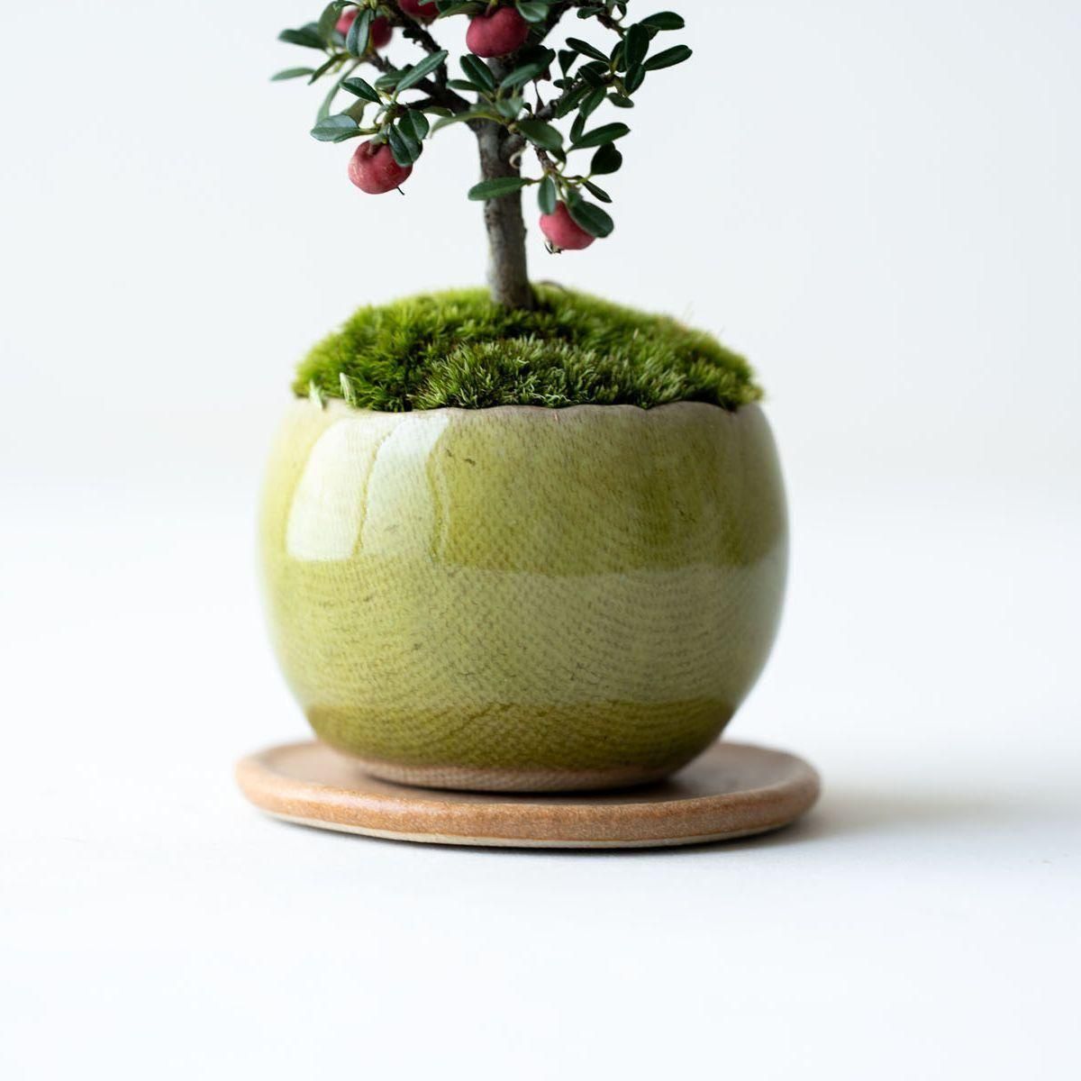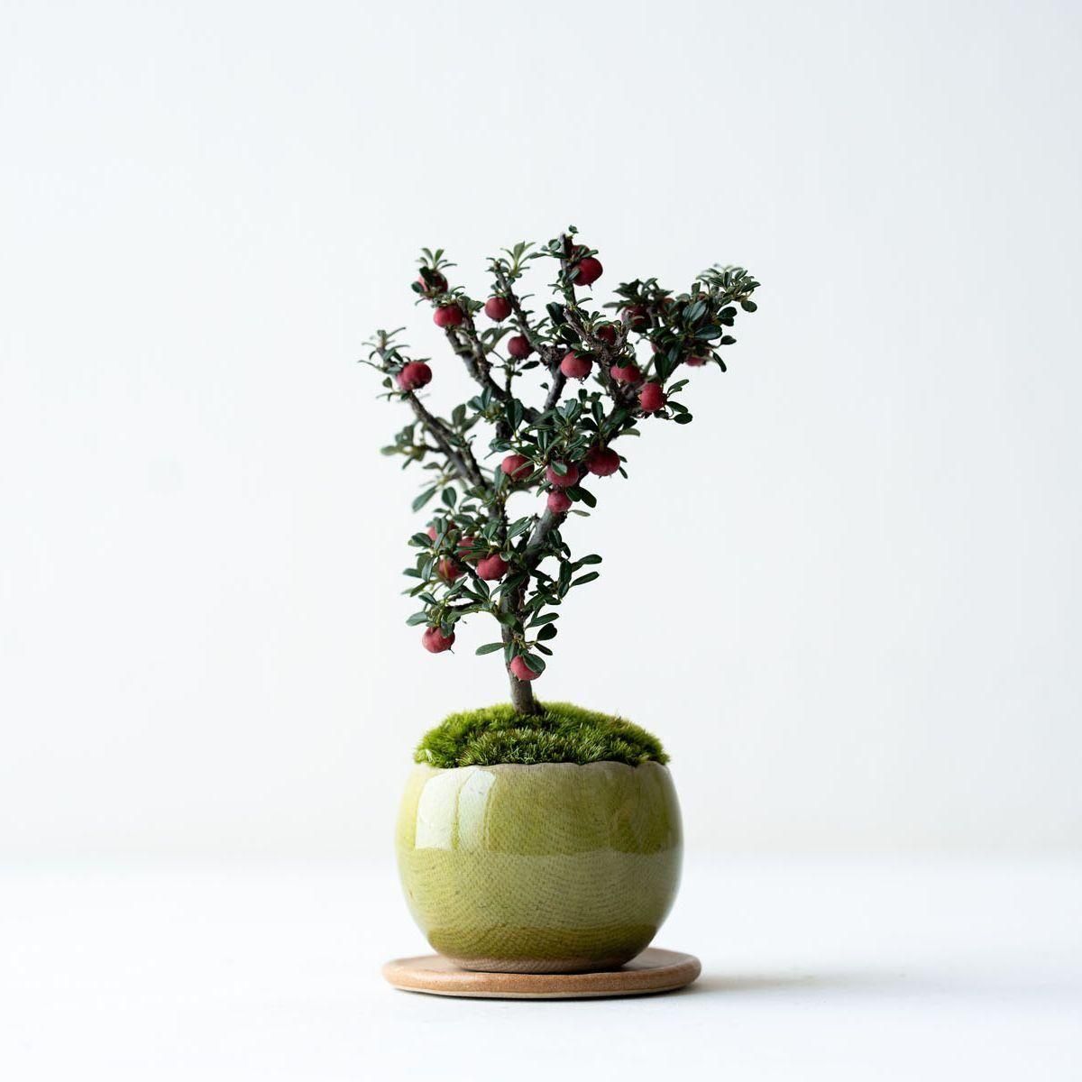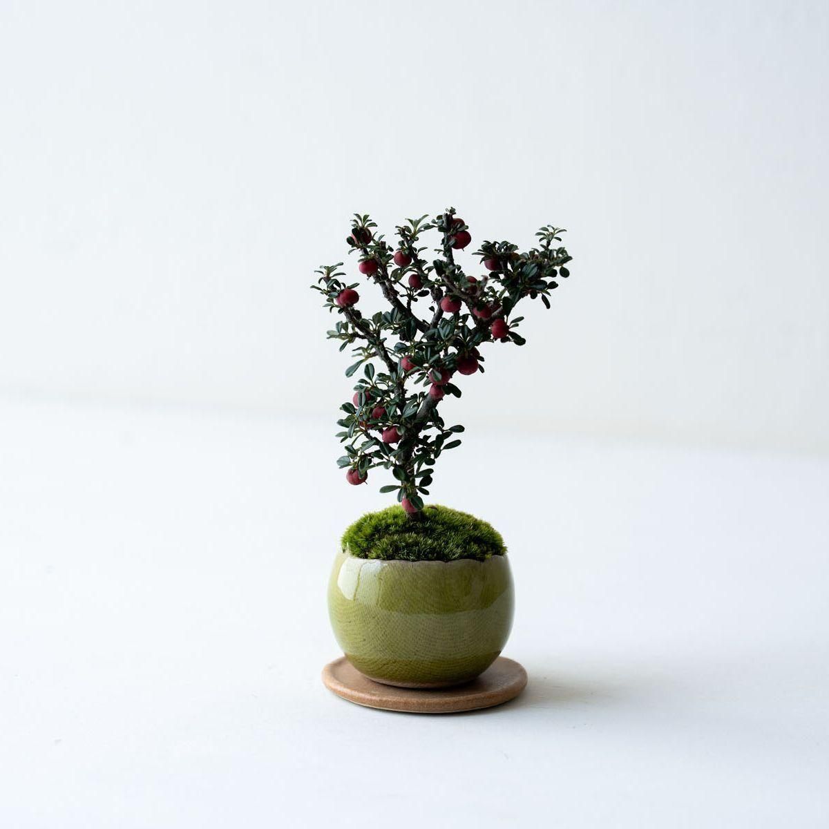 光沢のある小さな葉が可愛らしいシロシタン。春に純白の可憐な花を咲かせ、その後小さな実を付けます。はじめは小さめですが徐々に膨らみ、赤く色付き、秋ごろにはリンゴのように真っ赤な実が楽しめます。