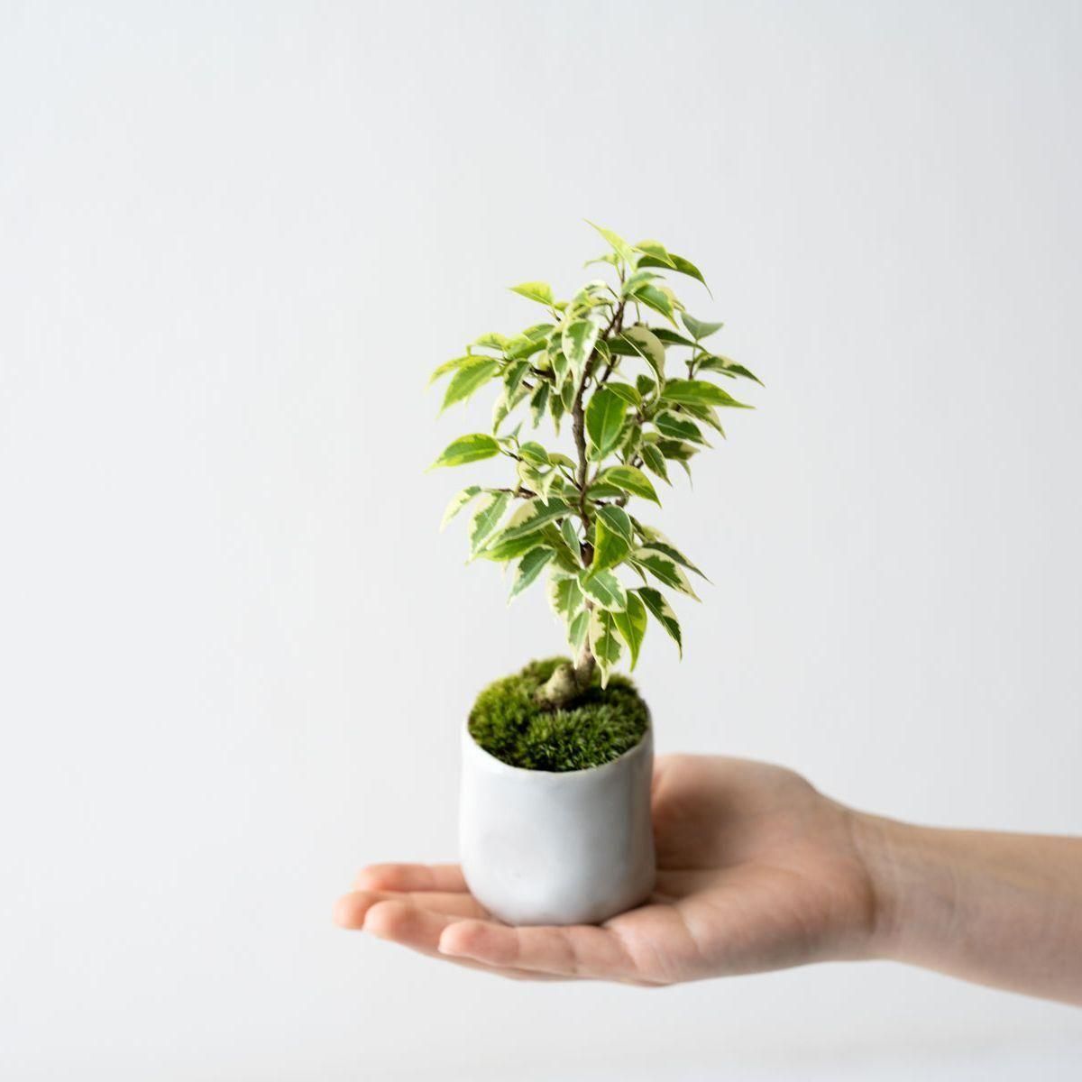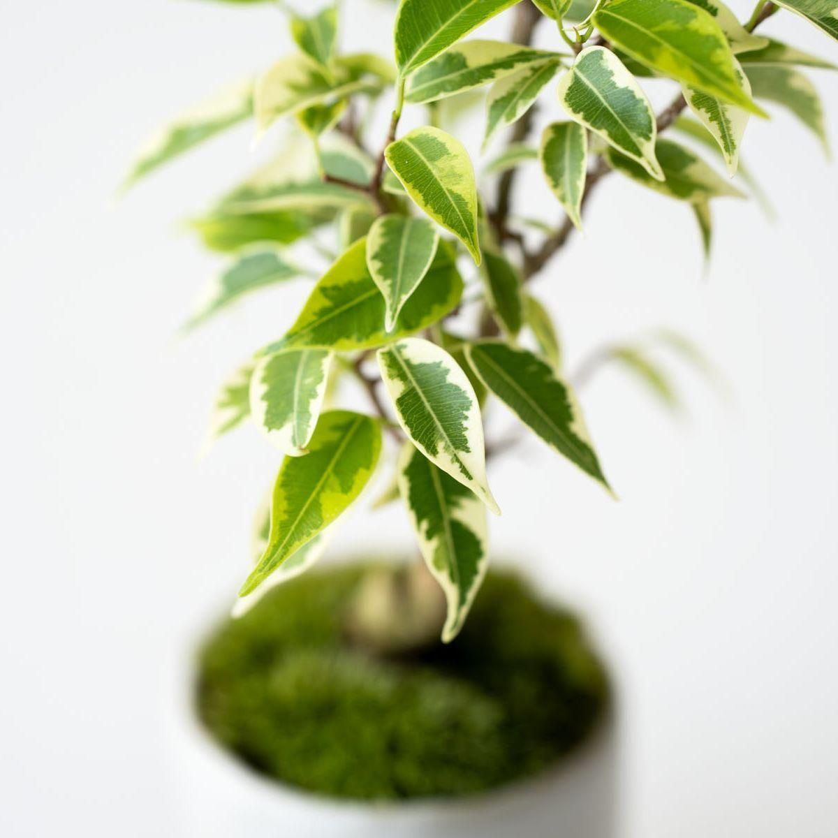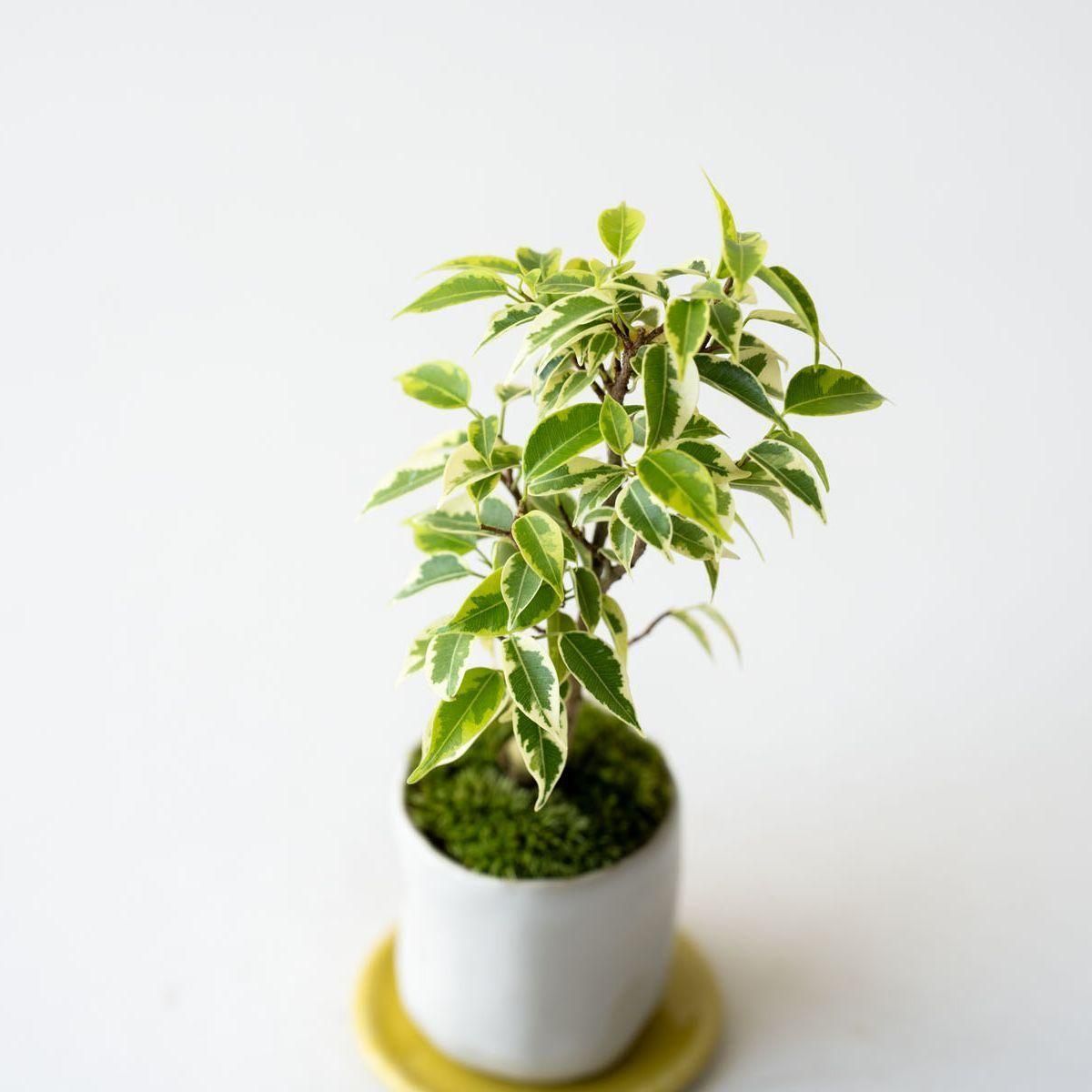 力強い白銀色の幹、明るい斑入りの葉が特徴的なフィカス。冷え込みを体験すると葉が淡い黄色に染まります。また、幹の根元付近の、どっしりとした雰囲気も個性があり、どこか可愛らしさも感じます。