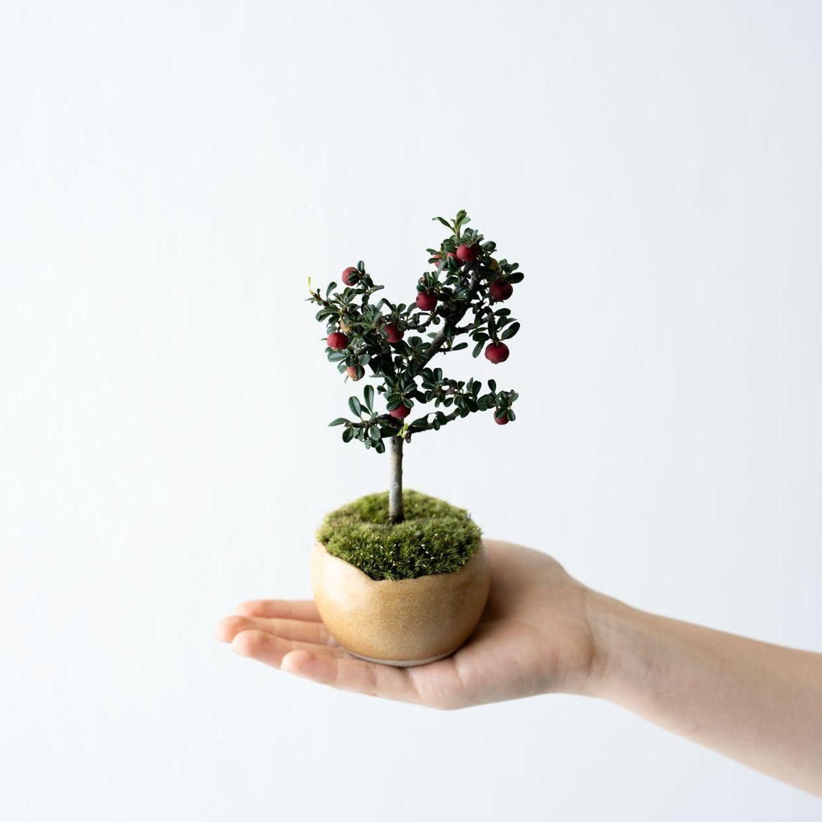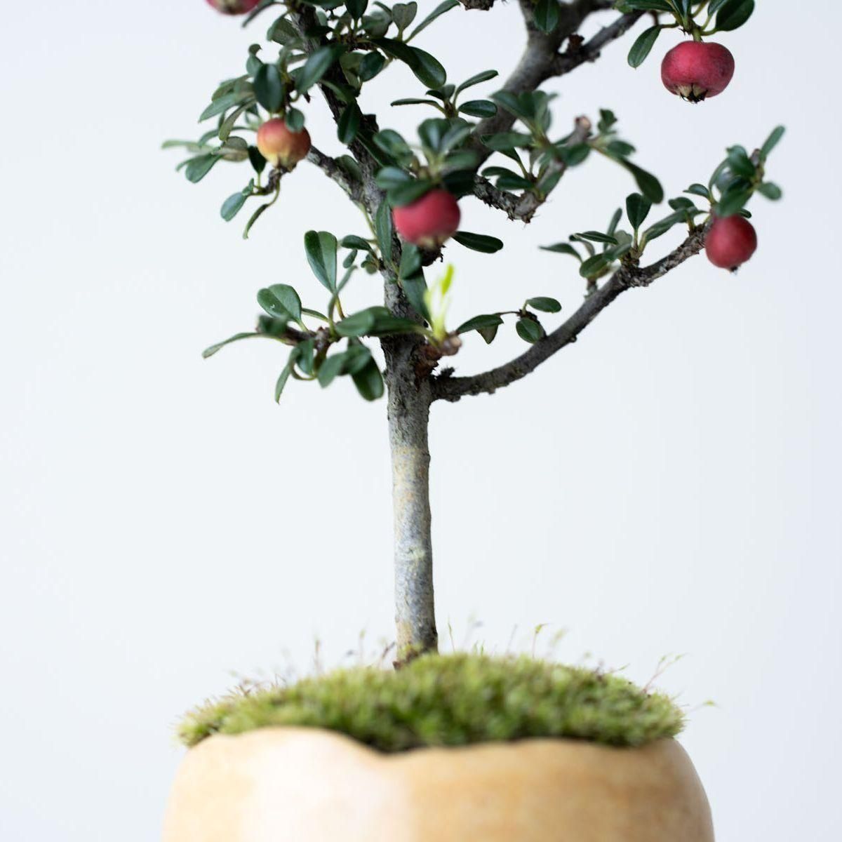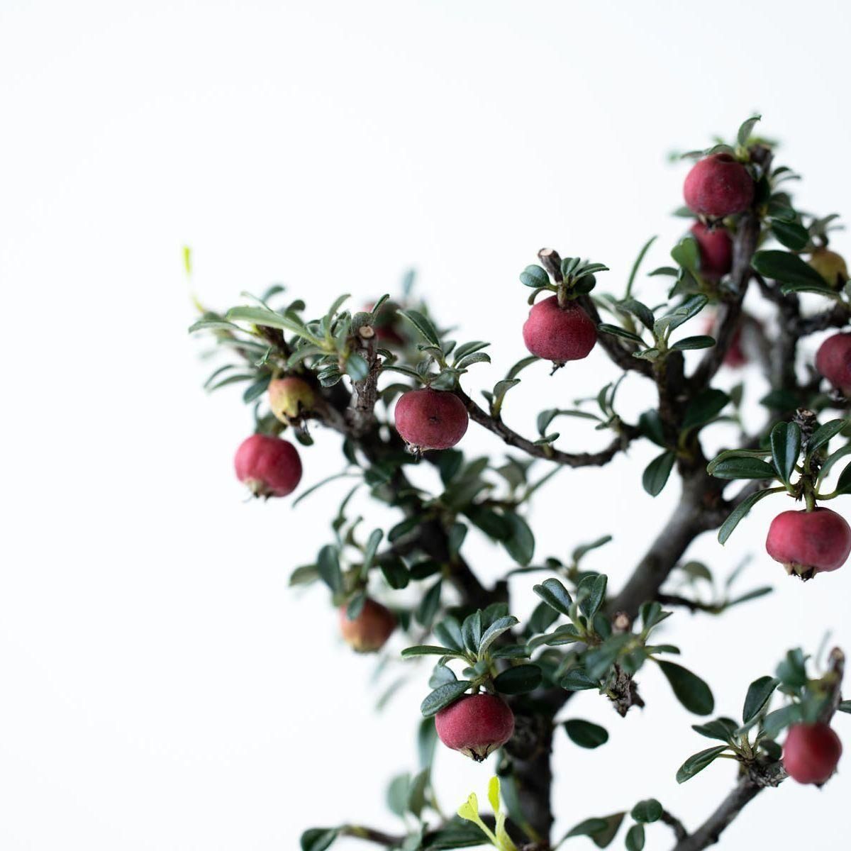 光沢のある小さな葉が可愛らしいシロシタン。春に純白の可憐な花を咲かせ、その後小さな実を付けます。はじめは小さめですが徐々に膨らみ、赤く色付き、秋ごろにはリンゴのように真っ赤な実が楽しめます。