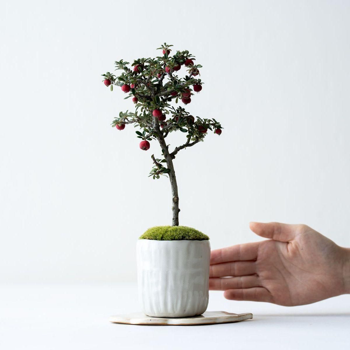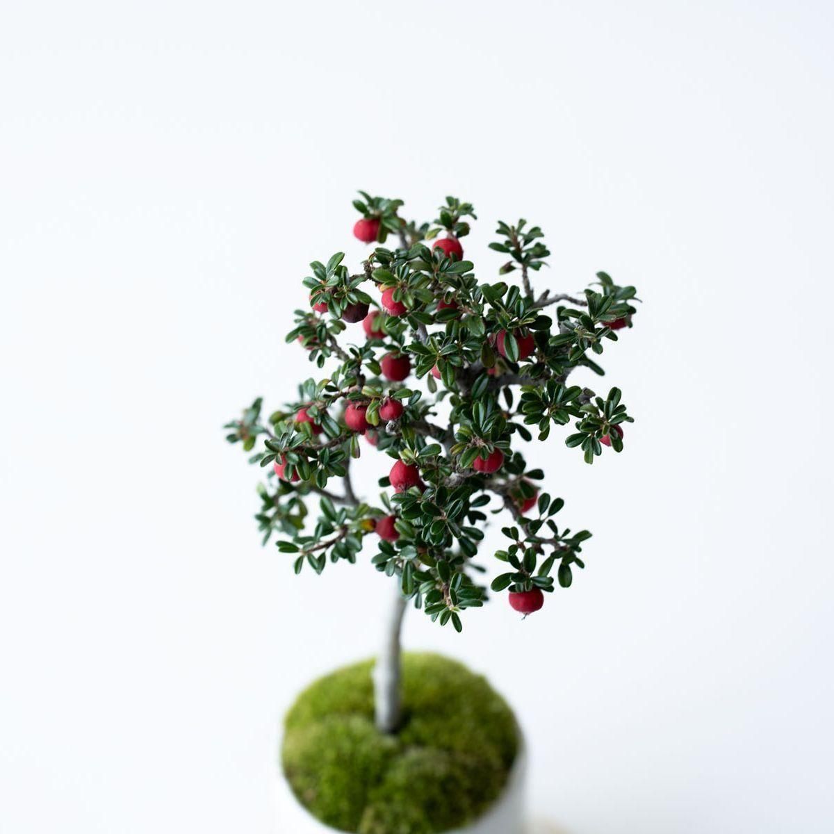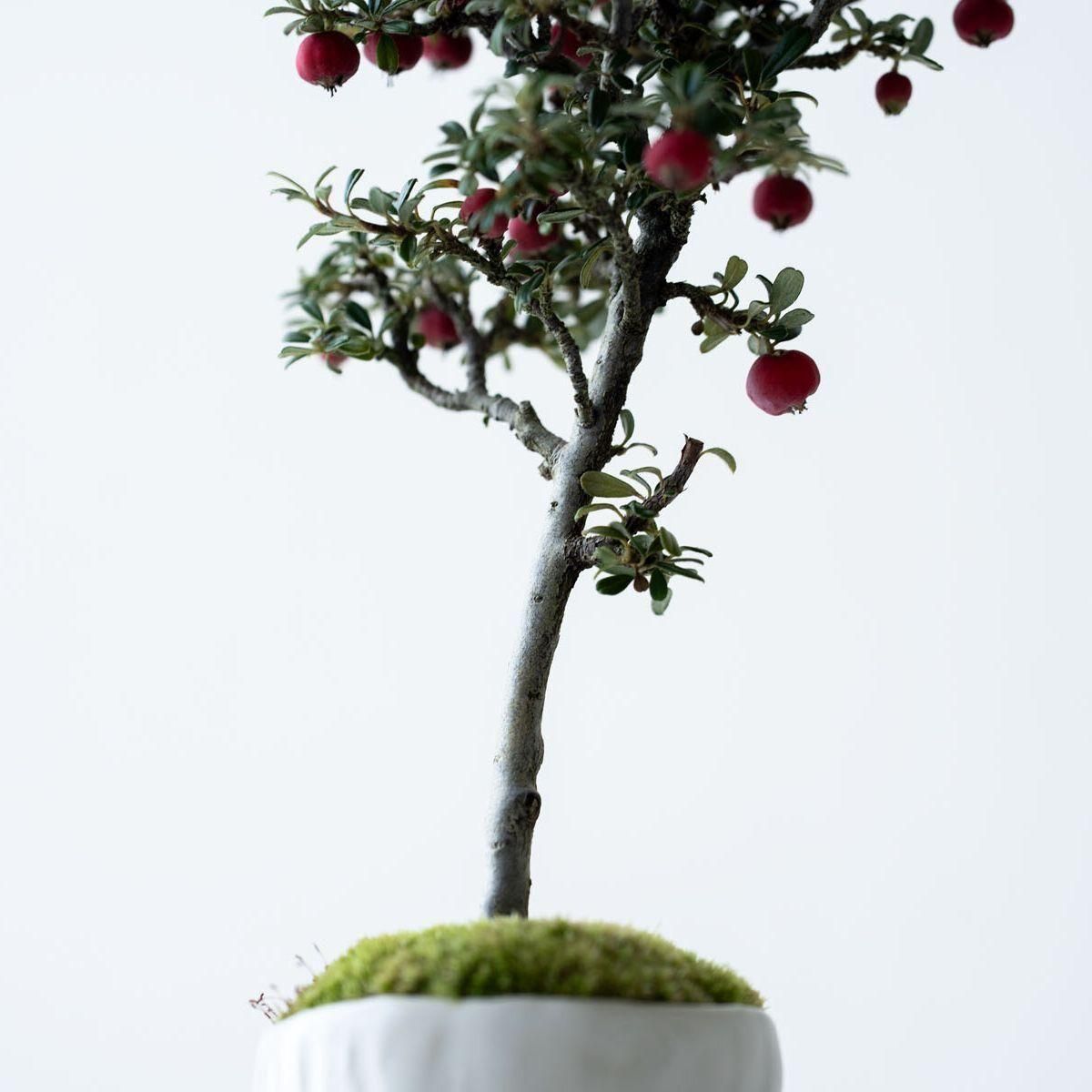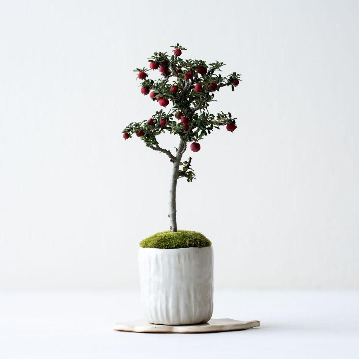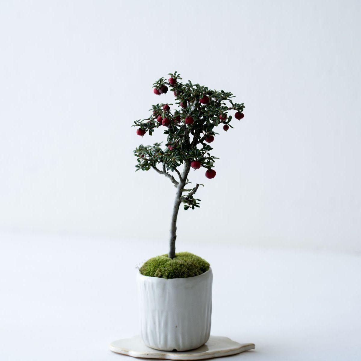 光沢のある小さな葉が可愛らしいシロシタン。春に純白の可憐な花を咲かせ、その後小さな実を付けます。はじめは小さめですが徐々に膨らみ、赤く色付き、秋ごろにはリンゴのように真っ赤な実が楽しめます。