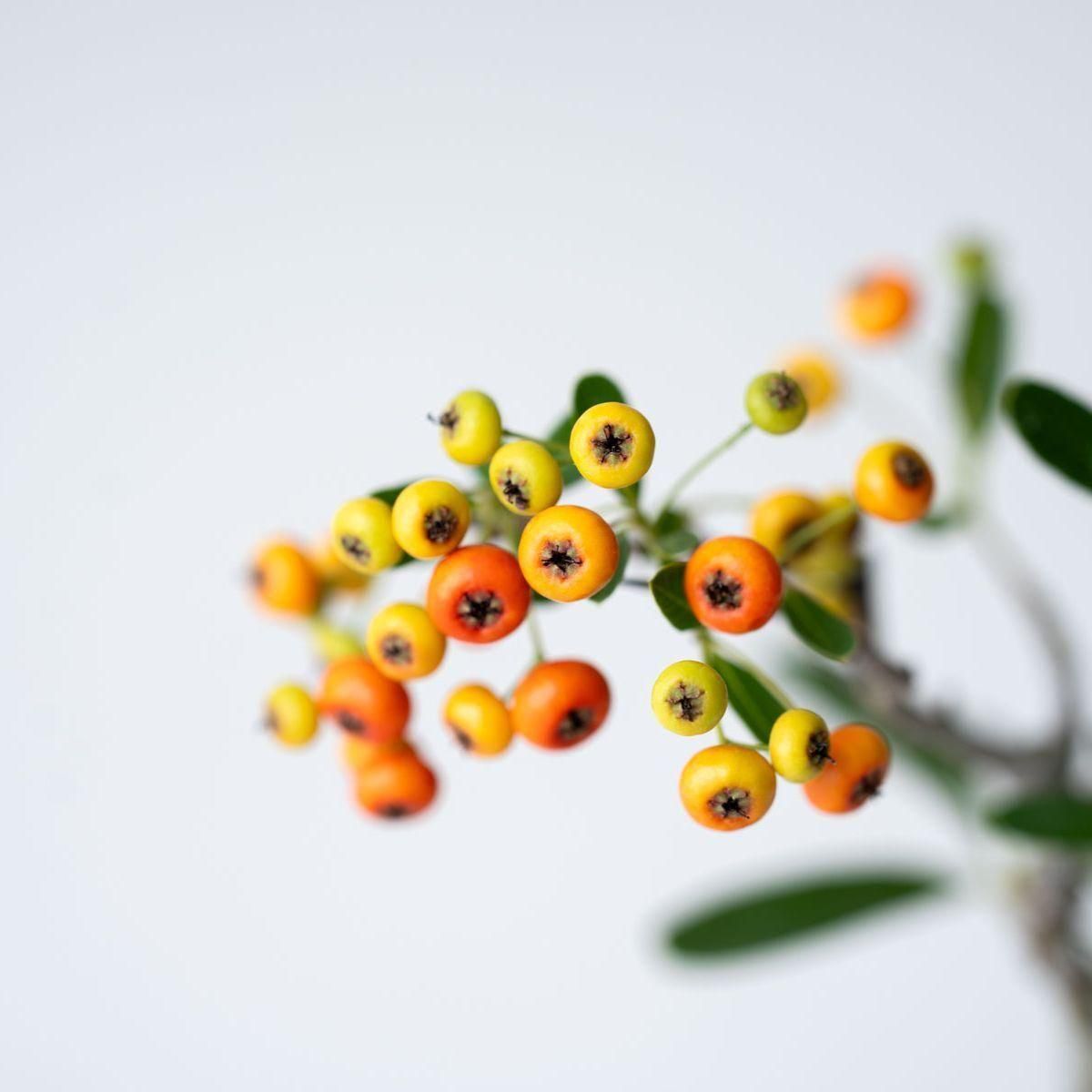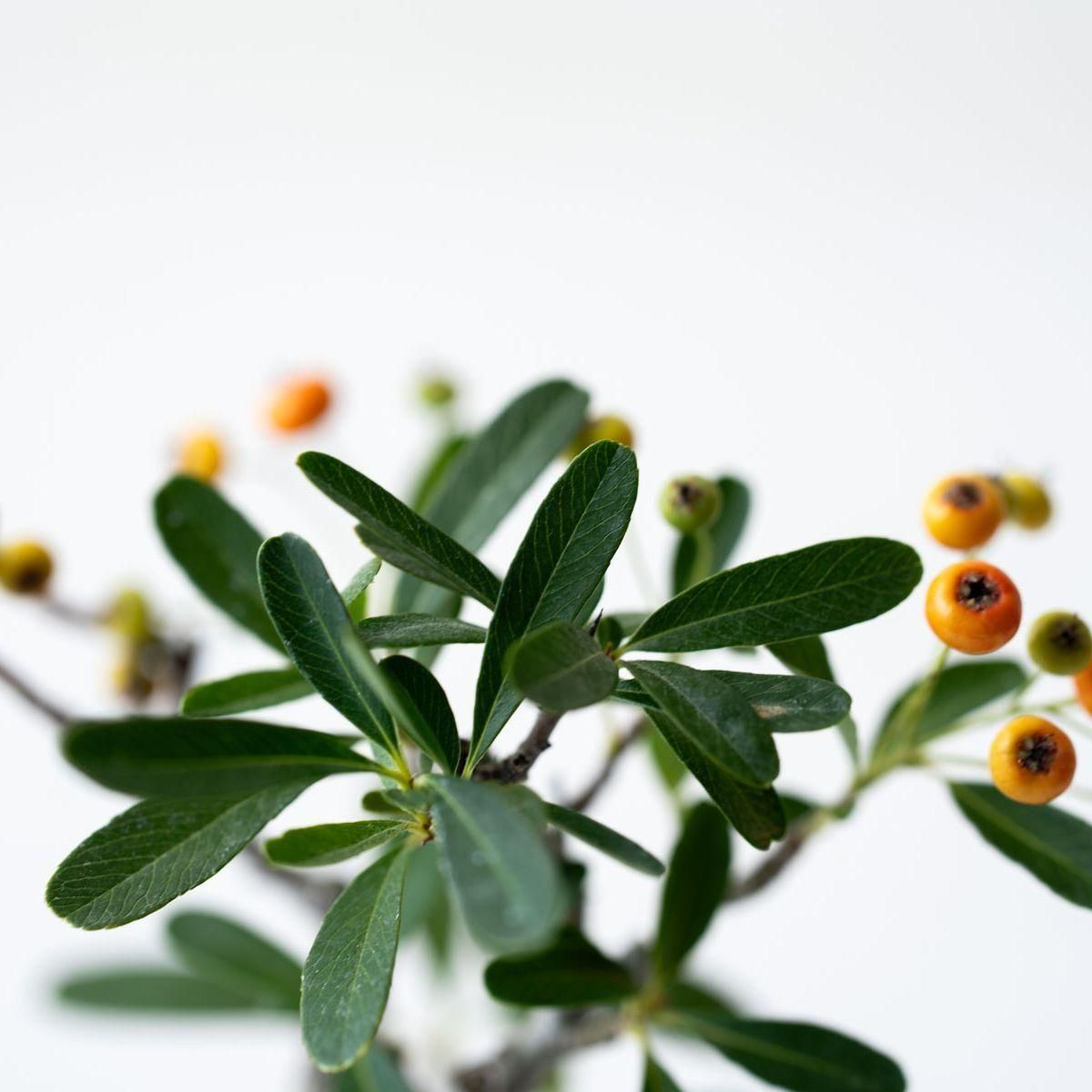 小さな白い花を咲かせた後は、緑色の実を付けるトキワサンザシ。この実は秋にかけて徐々に色づき、美しい朱色に染まります。花付き・実付きともに良いので、四季折々の変化が楽しい樹木です。
