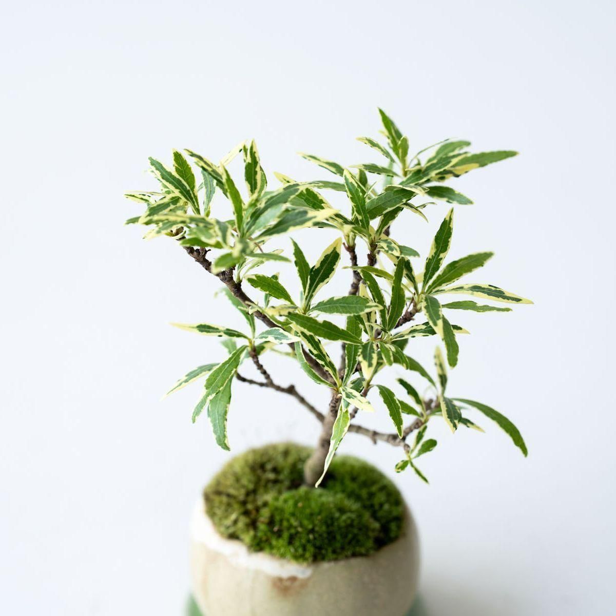 すっと伸びる葉先に白い斑(ふ)が入り、美しい表情を見せる姫クチナシ。環境の変化に強く、病害虫にもかかり難い植物なので気楽に向き合える点もこの木の魅力です。