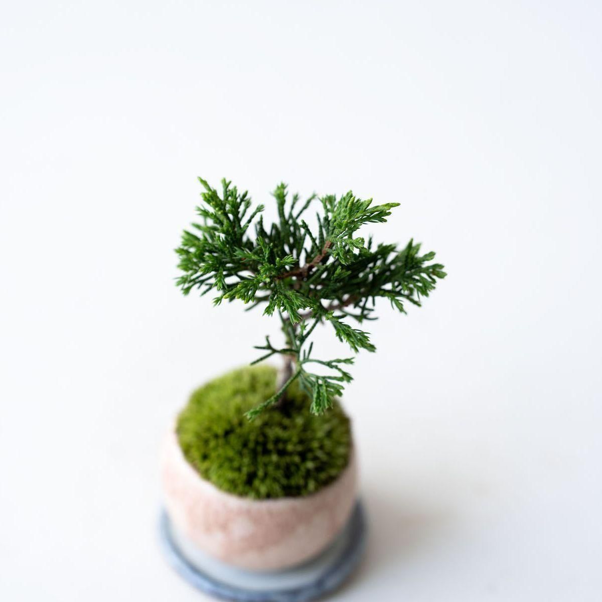 盆栽の世界で絶対的な人気を誇る真柏(しんぱく)。深い緑が美しい葉姿、育てるほどに力強さや古さを増す幹肌、そして強健な性質でとても育てやすいことから初心者から玄人まで幅広く親しまれています。また、真柏の葉には深い森林を連想させる香り成分が含まれており、その香りの良さからアロマオイルにも使用されています。お手入れの度に深呼吸したくなる香りが楽しめるのも、真柏の隠れた魅力かもしれません。