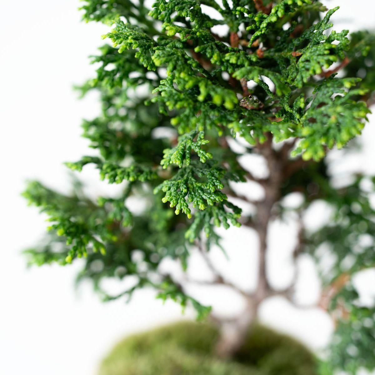 こんもりと密に茂った葉が可愛らしい八房ヒノキ。細かく茂った柔らかな葉は落葉せず、通年緑を楽しめます。比較的丈夫で育てやすいので初心者の方にもおススメ。