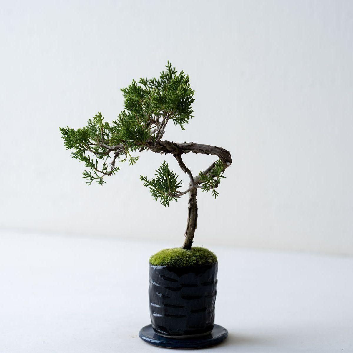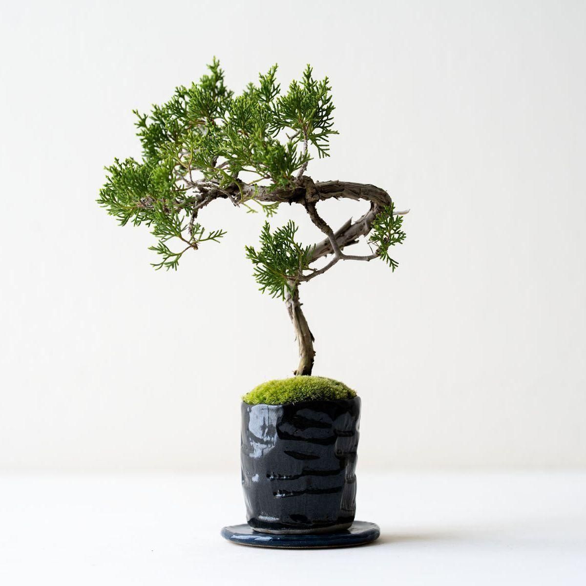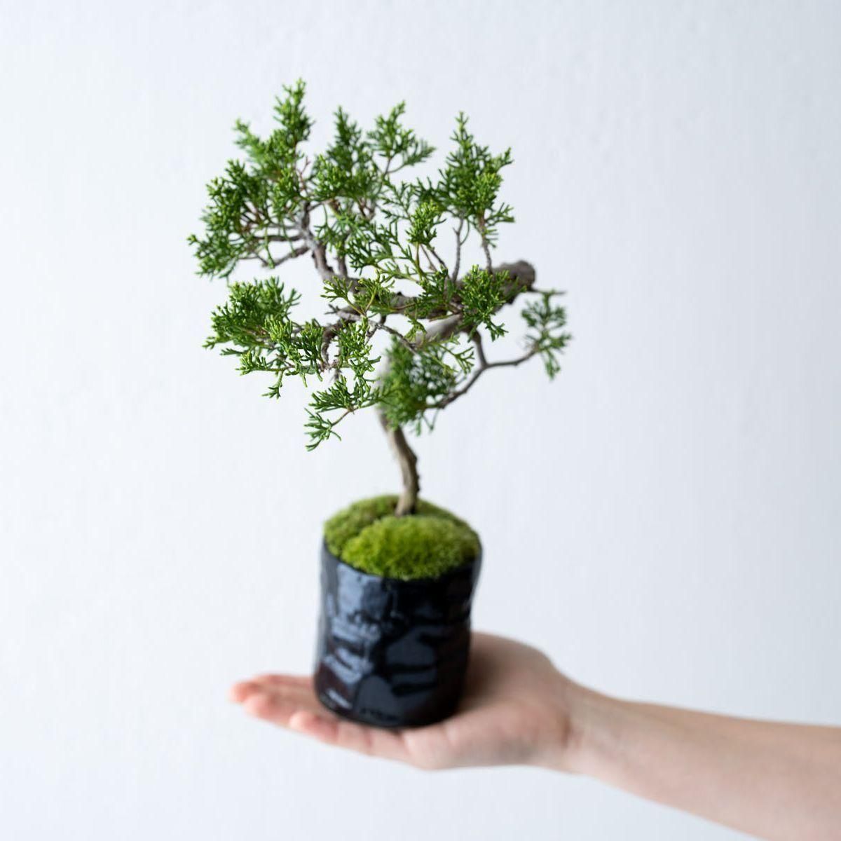 盆栽の世界で絶対的な人気を誇る真柏(しんぱく)。深い緑が美しい葉姿、育てるほどに力強さや古さを増す幹肌、そして強健な性質でとても育てやすいことから初心者から玄人まで幅広く親しまれています。また、真柏の葉には深い森林を連想させる香り成分が含まれており、その香りの良さからアロマオイルにも使用されています。お手入れの度に深呼吸したくなる香りが楽しめるのも、真柏の隠れた魅力かもしれません。