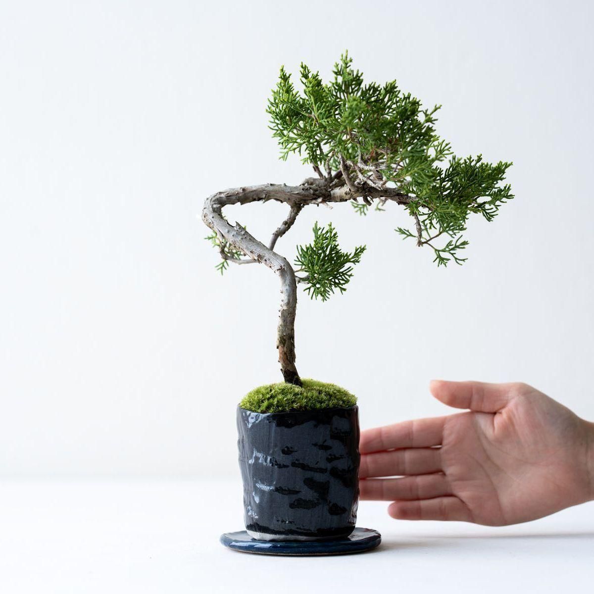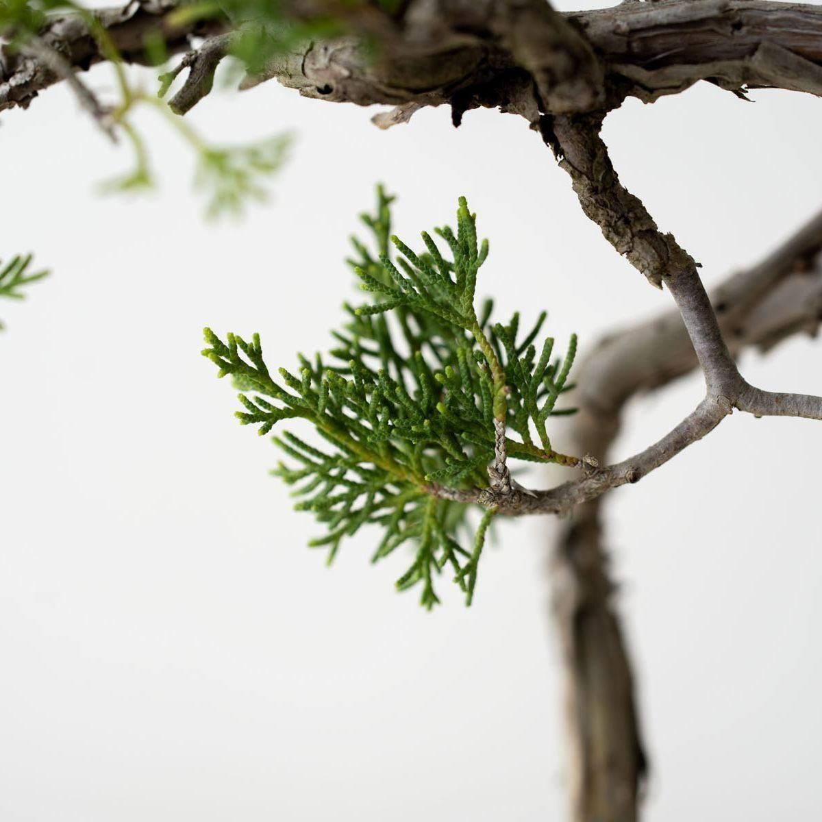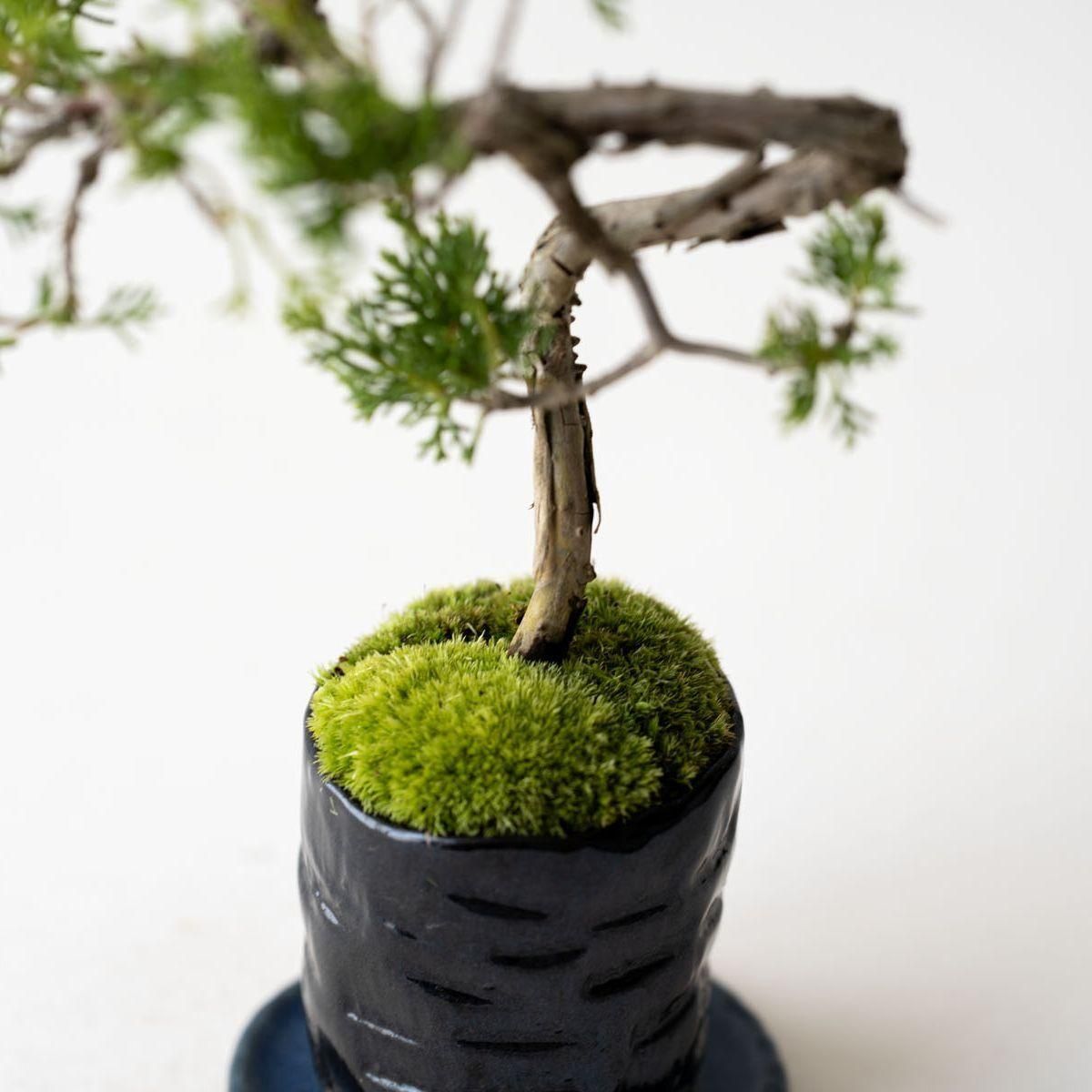 盆栽の世界で絶対的な人気を誇る真柏(しんぱく)。深い緑が美しい葉姿、育てるほどに力強さや古さを増す幹肌、そして強健な性質でとても育てやすいことから初心者から玄人まで幅広く親しまれています。また、真柏の葉には深い森林を連想させる香り成分が含まれており、その香りの良さからアロマオイルにも使用されています。お手入れの度に深呼吸したくなる香りが楽しめるのも、真柏の隠れた魅力かもしれません。