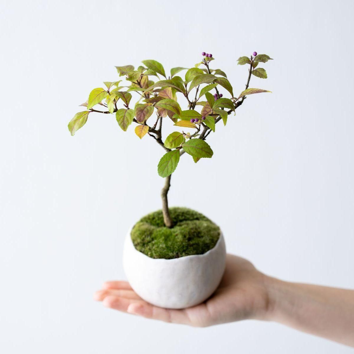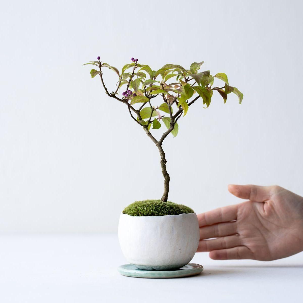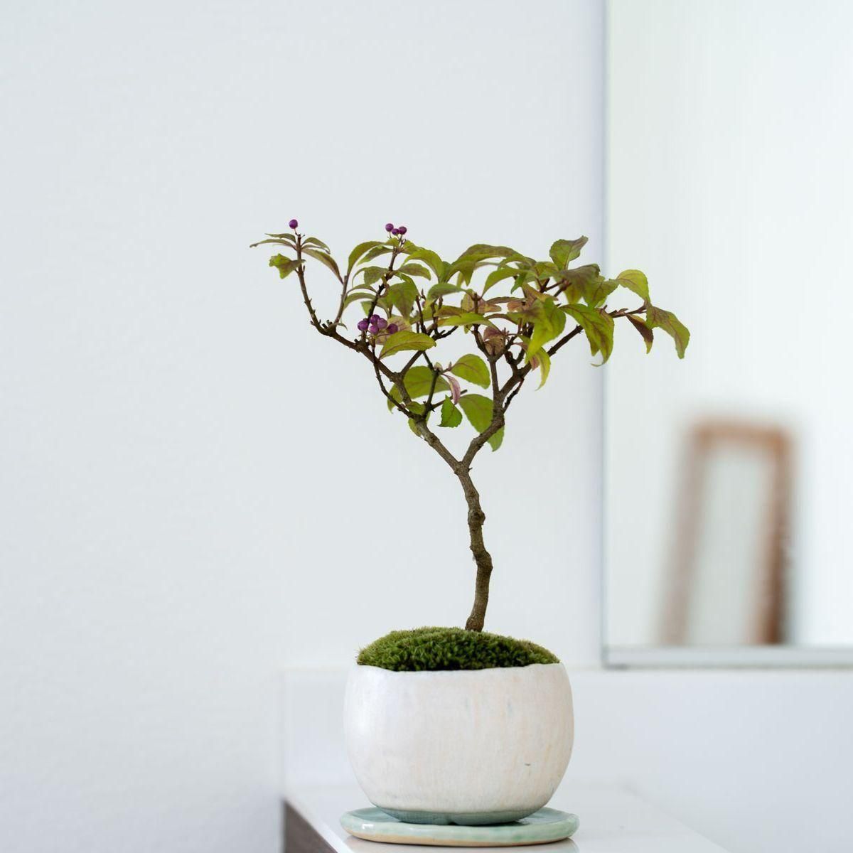 秋に紫色の実をつける姿が美しい樹木です。初夏に開花し、夏に結実した実は10〜11月になると緑色から明るい紫色に熟していきます。そして落葉した後も実は枝先に残り続けるので、冬も侘び寂の風情ある姿を堪能できます。