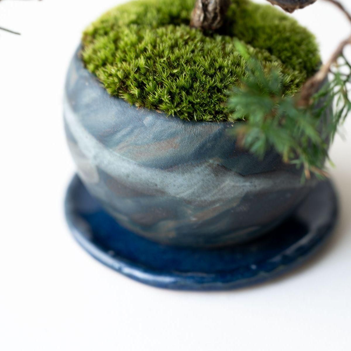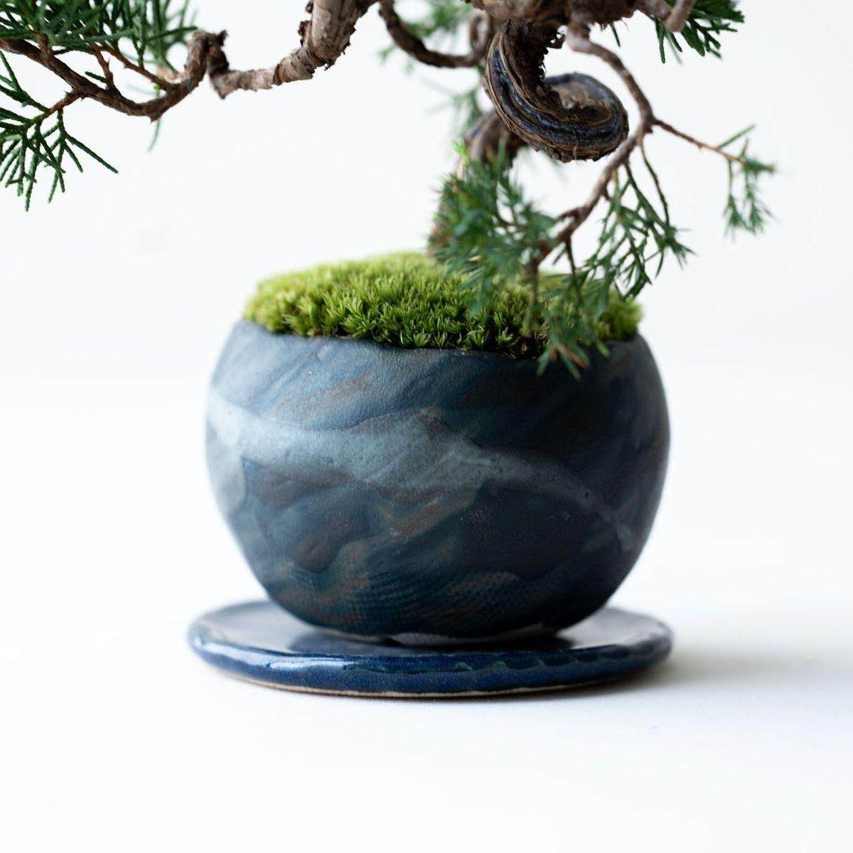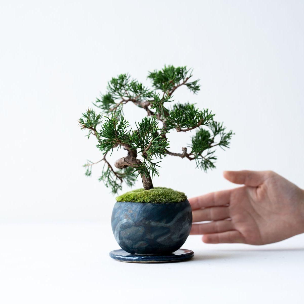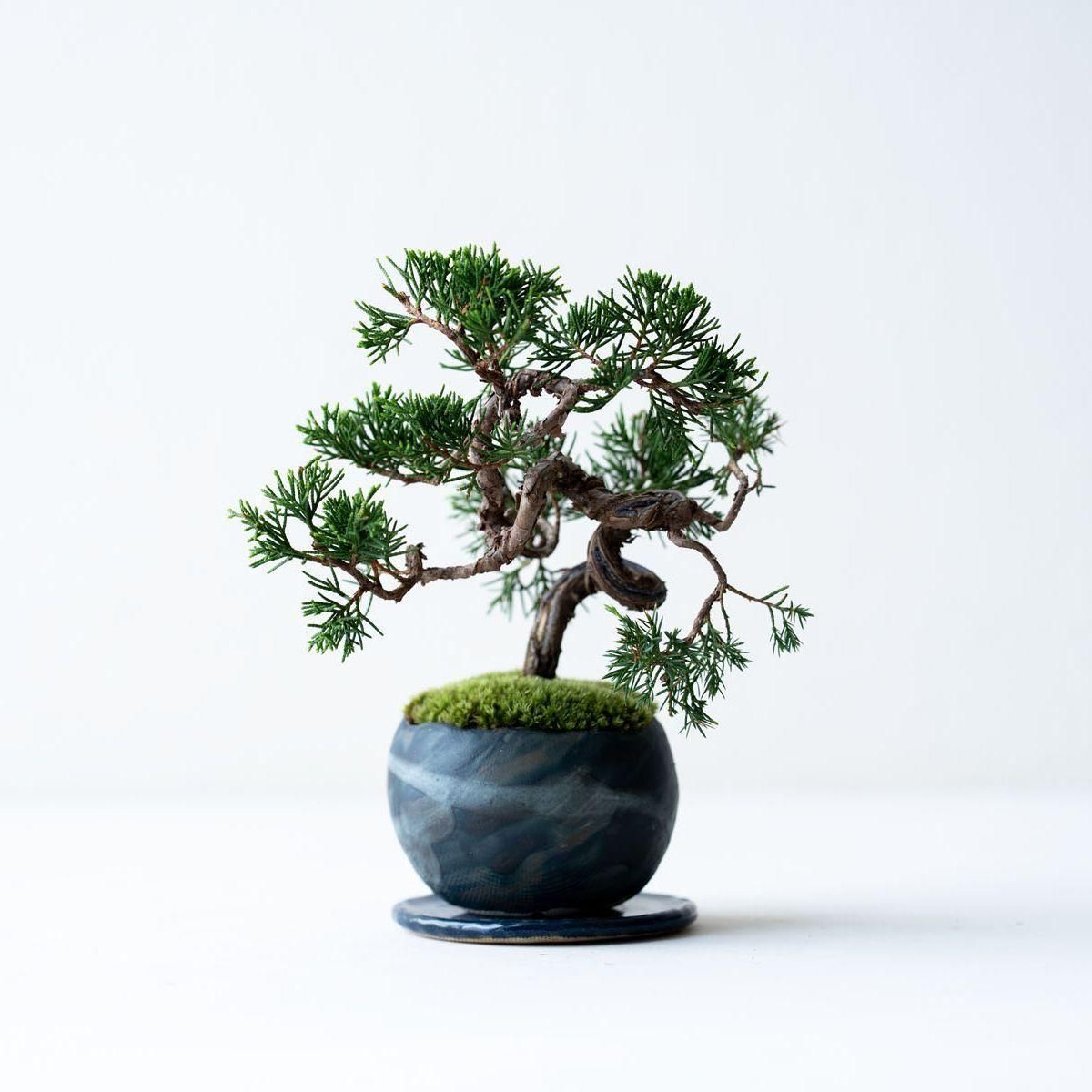 盆栽の世界で絶対的な人気を誇る真柏(しんぱく)。深い緑が美しい葉姿、育てるほどに力強さや古さを増す幹肌、そして強健な性質でとても育てやすいことから初心者から玄人まで幅広く親しまれています。また、真柏の葉には深い森林を連想させる香り成分が含まれており、その香りの良さからアロマオイルにも使用されています。お手入れの度に深呼吸したくなる香りが楽しめるのも、真柏の隠れた魅力かもしれません。