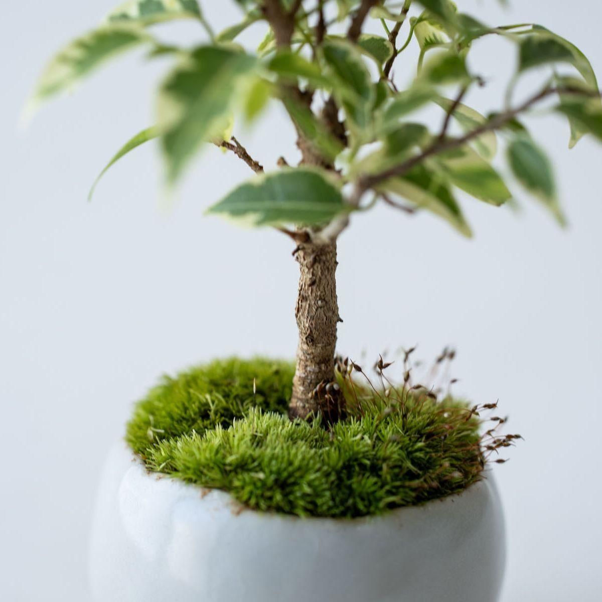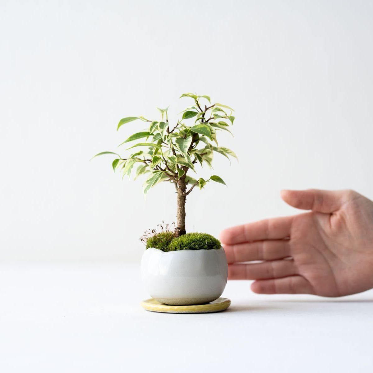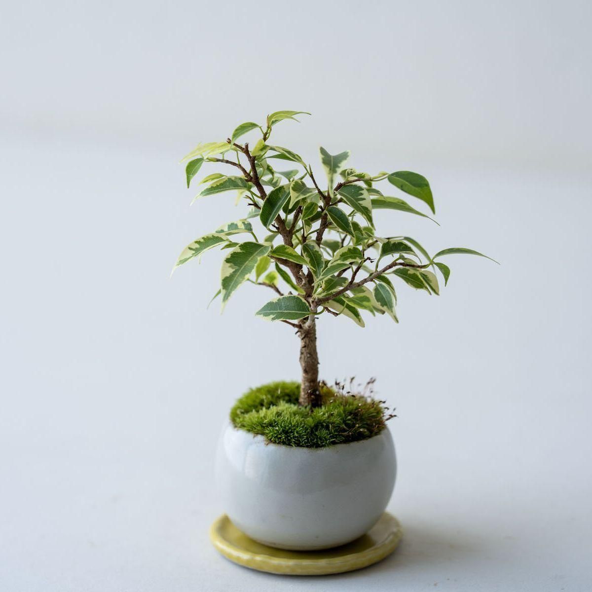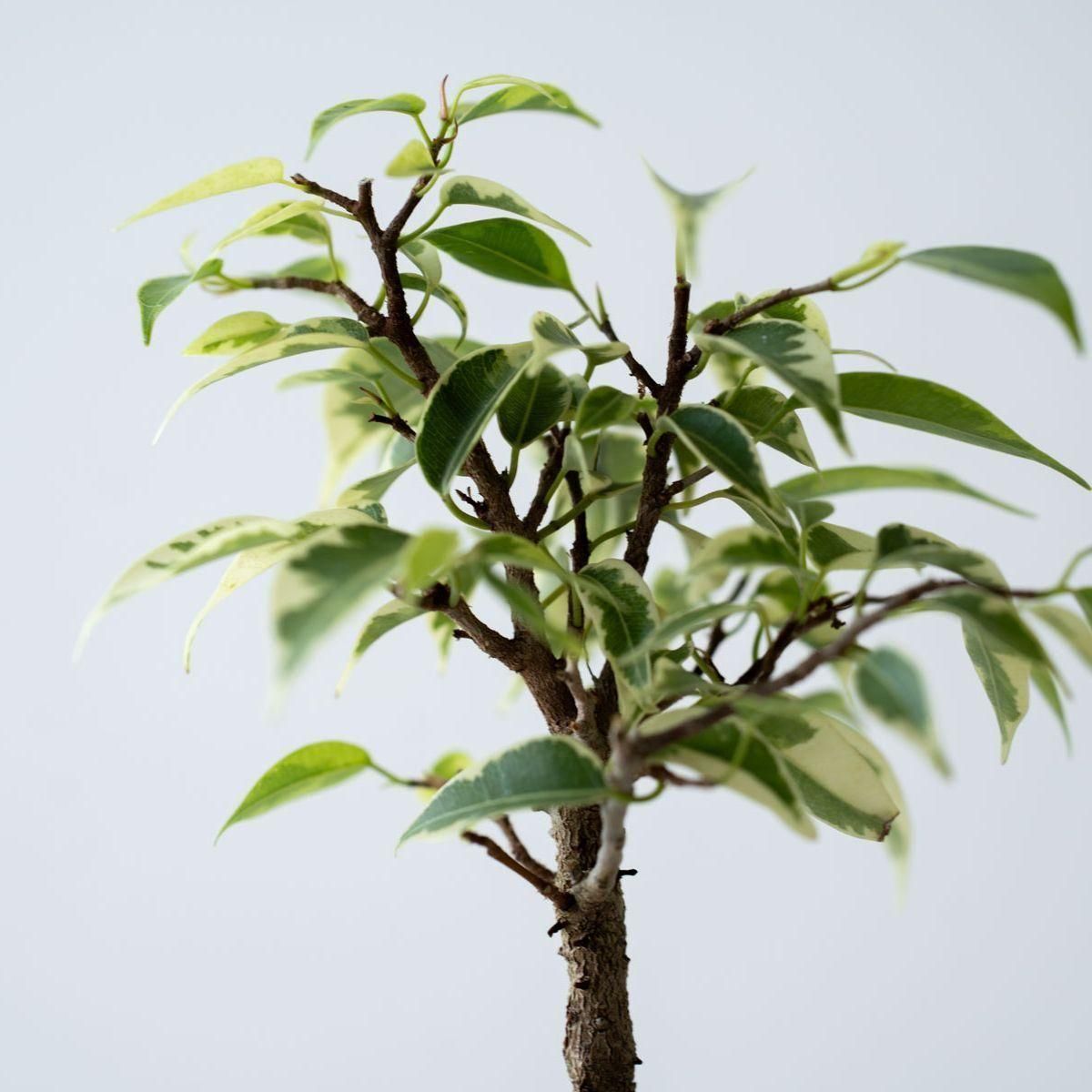力強い白銀色の幹、明るい斑入りの葉が特徴的なフィカス。冷え込みを体験すると葉が淡い黄色に染まります。また、幹の根元付近の、どっしりとした雰囲気も個性があり、どこか可愛らしさも感じます。