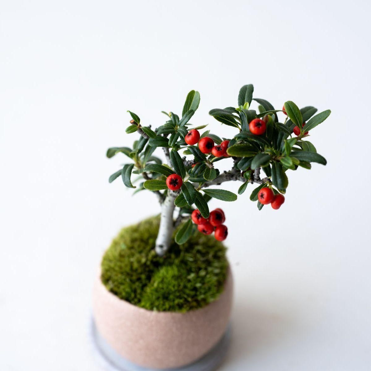 姫トキワサンザシは、葉が小さく細やかな枝ぶりになる(=姫性)トキワサンザシです。小さな白い花を咲かせた後は緑色の実を付け、やがて秋ごろにはまっ赤に色づきます。花付き実付きともに良いので四季折々の変化が楽しい樹種です。また、成長速度も穏やかなので樹形をキープしやすい点もこの木の魅力。