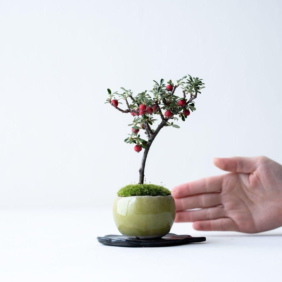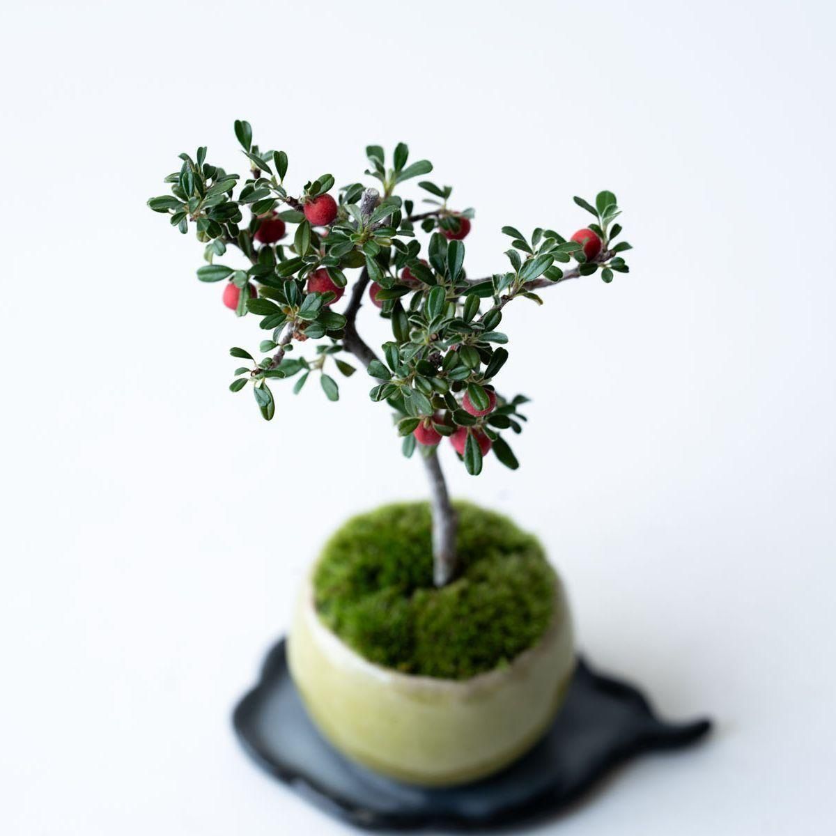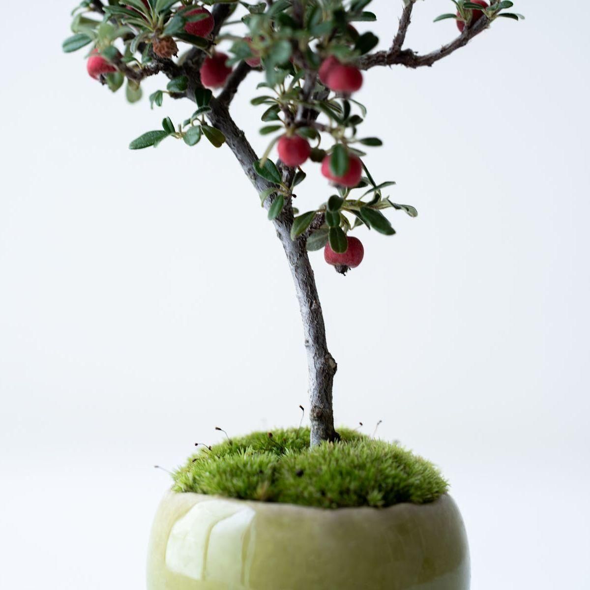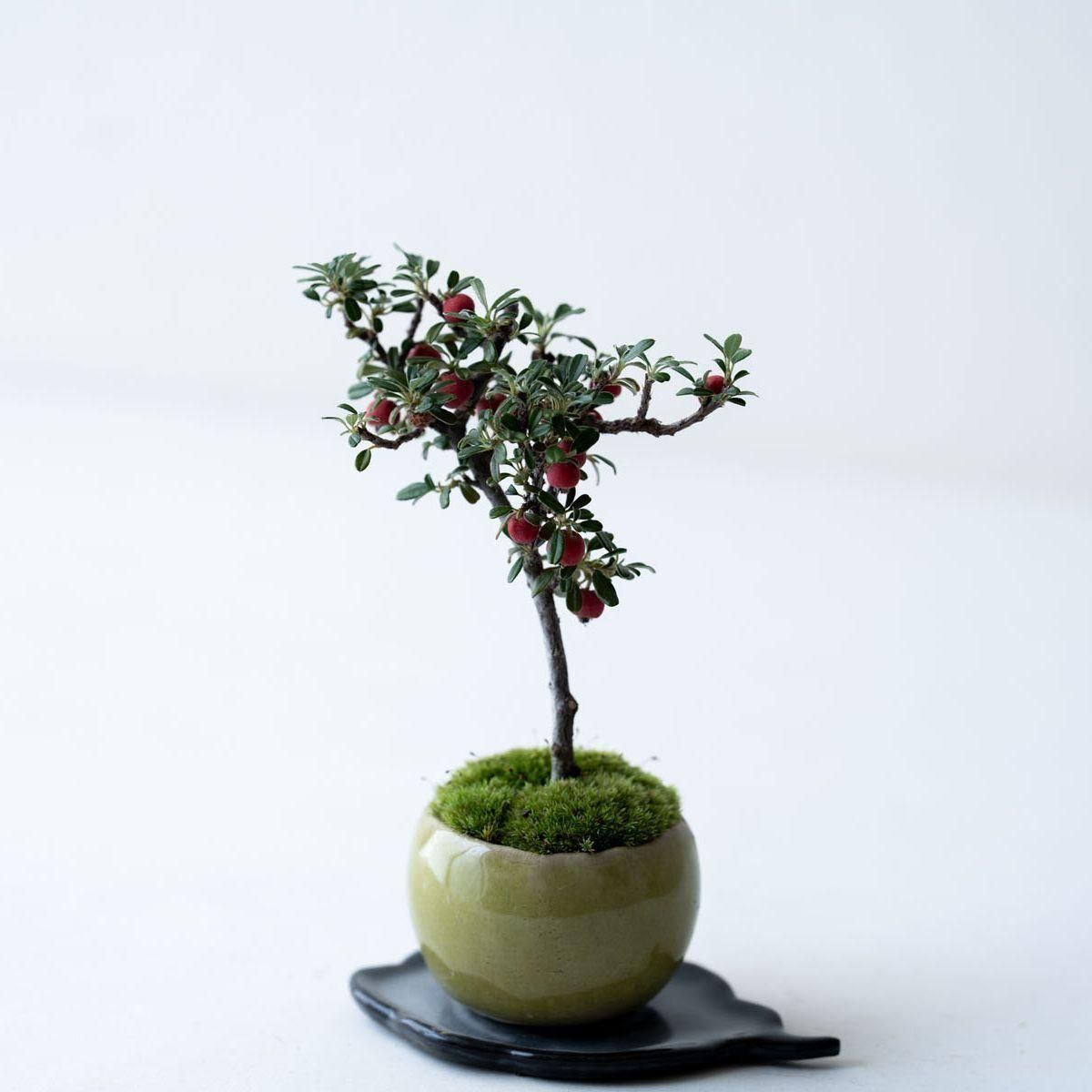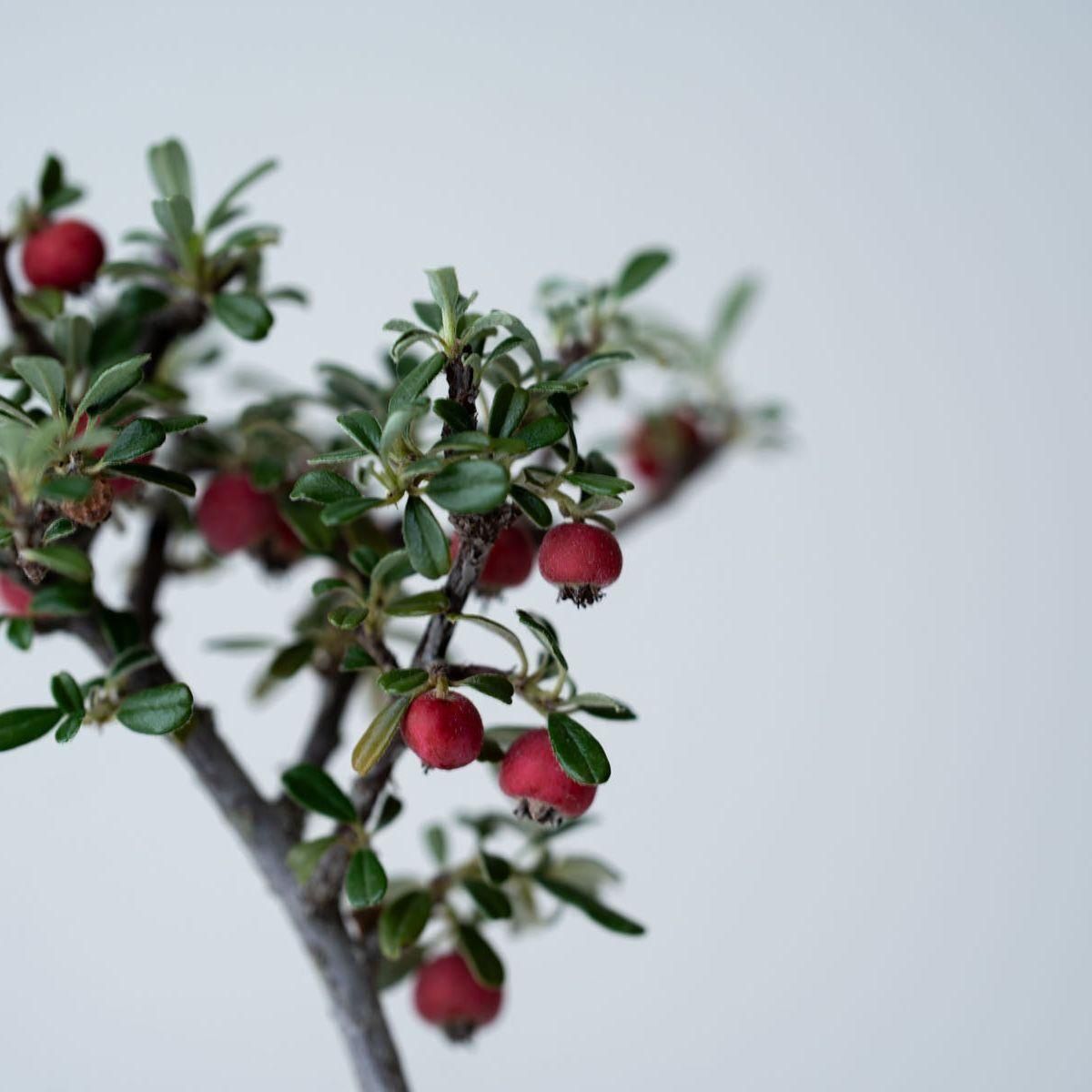 光沢のある小さな葉が可愛らしいシロシタン。春に純白の可憐な花を咲かせ、その後小さな実を付けます。はじめは小さめですが徐々に膨らみ、赤く色付き、秋ごろにはリンゴのように真っ赤な実が楽しめます。