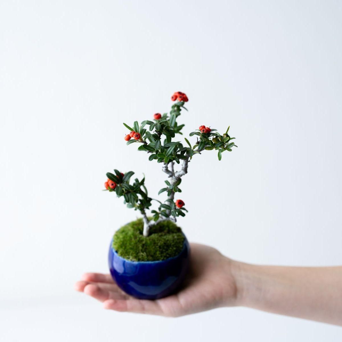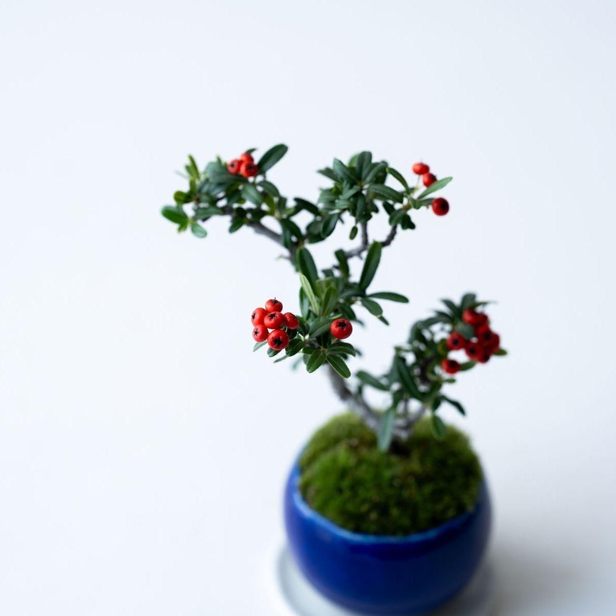 姫トキワサンザシは、葉が小さく細やかな枝ぶりになる(=姫性)トキワサンザシです。小さな白い花を咲かせた後は緑色の実を付け、やがて秋ごろにはまっ赤に色づきます。花付き実付きともに良いので四季折々の変化が楽しい樹種です。また、成長速度も穏やかなので樹形をキープしやすい点もこの木の魅力。